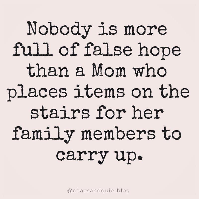 Does anyone else have stairs that are piled high with things that need to go up – but for some reason, everyone in the family can walk right on past it but you??