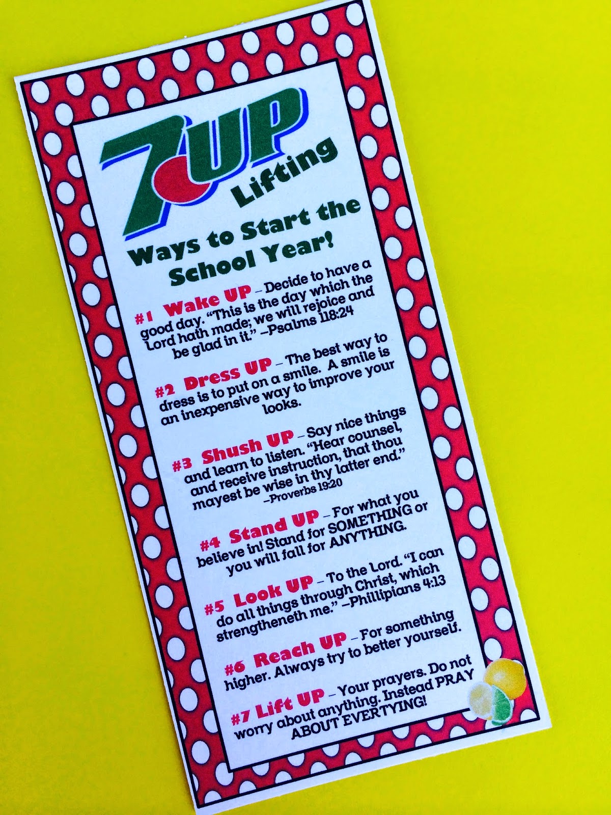 thanks for the back to school 7-up tags My husband was presenting the children's message at church and tied your 7 to his message we handed out the small bottle of 7-up with the print outs tied on to them