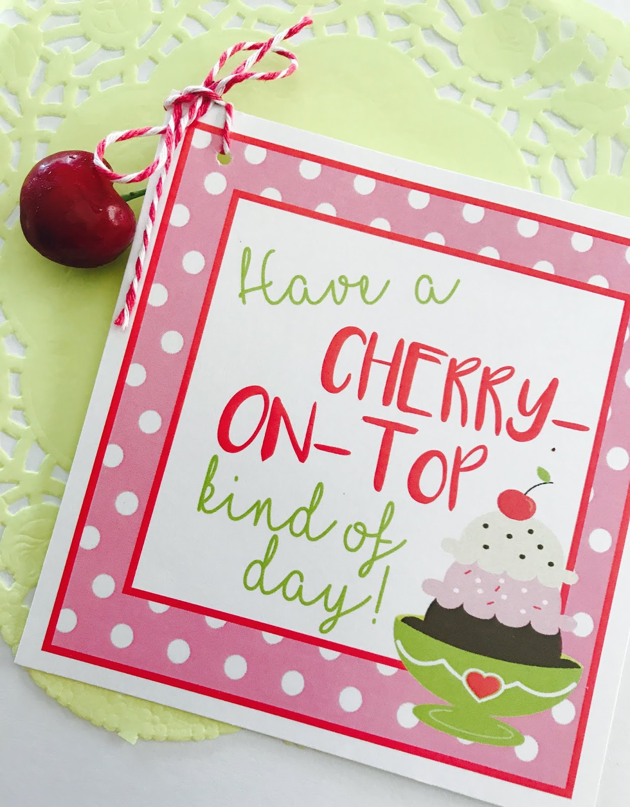 Fill a basket up with cherries, attach this tag and your friends will feel loved forever. Ok, maybe not forever…but you’ll for sure be their favorite at least for awhile.