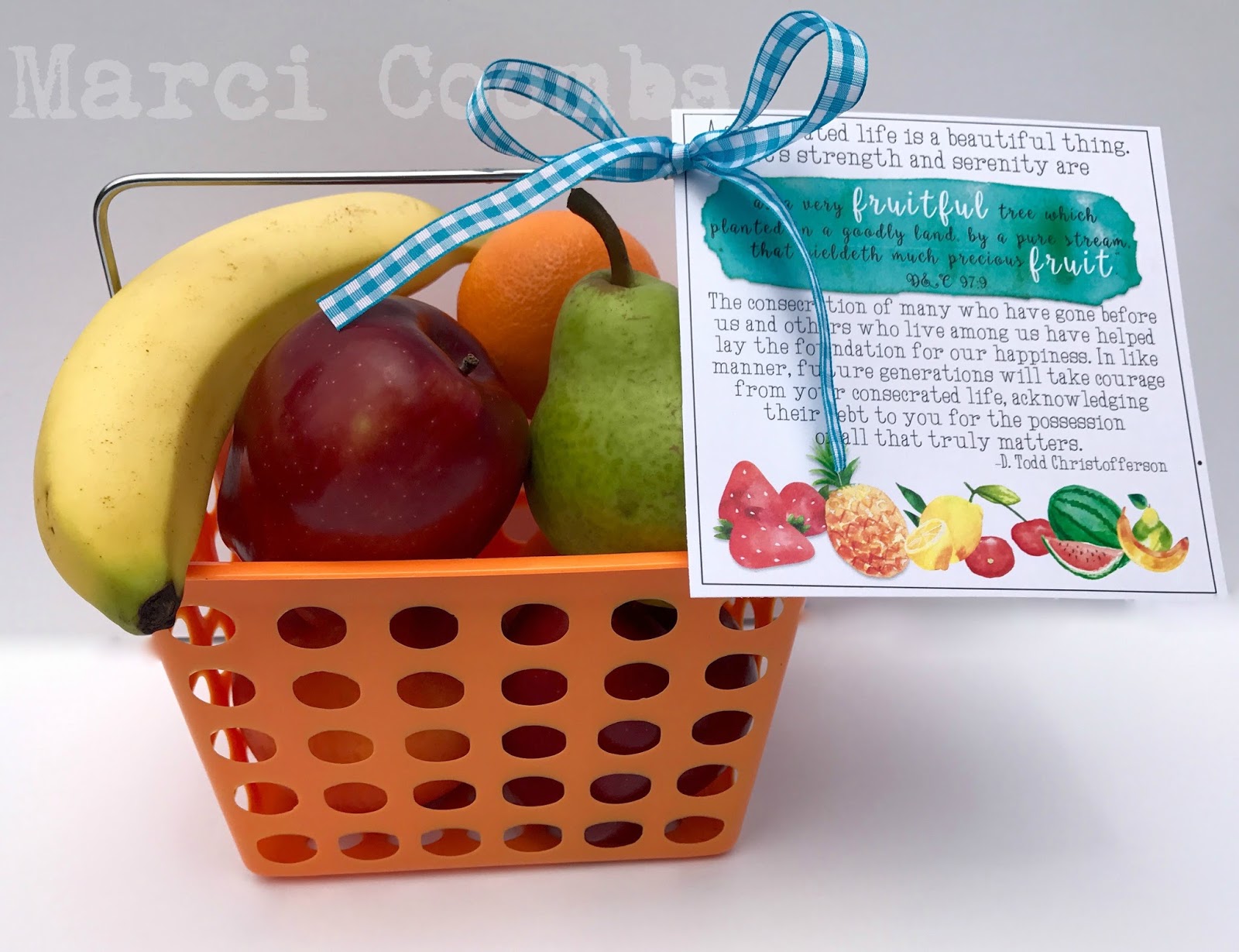 I just LOVE how he compared living a consecrated life to a fruitful tree. Hence…my tag this month goes along perfectly with FRESH FRUIT! Any kind you want!!