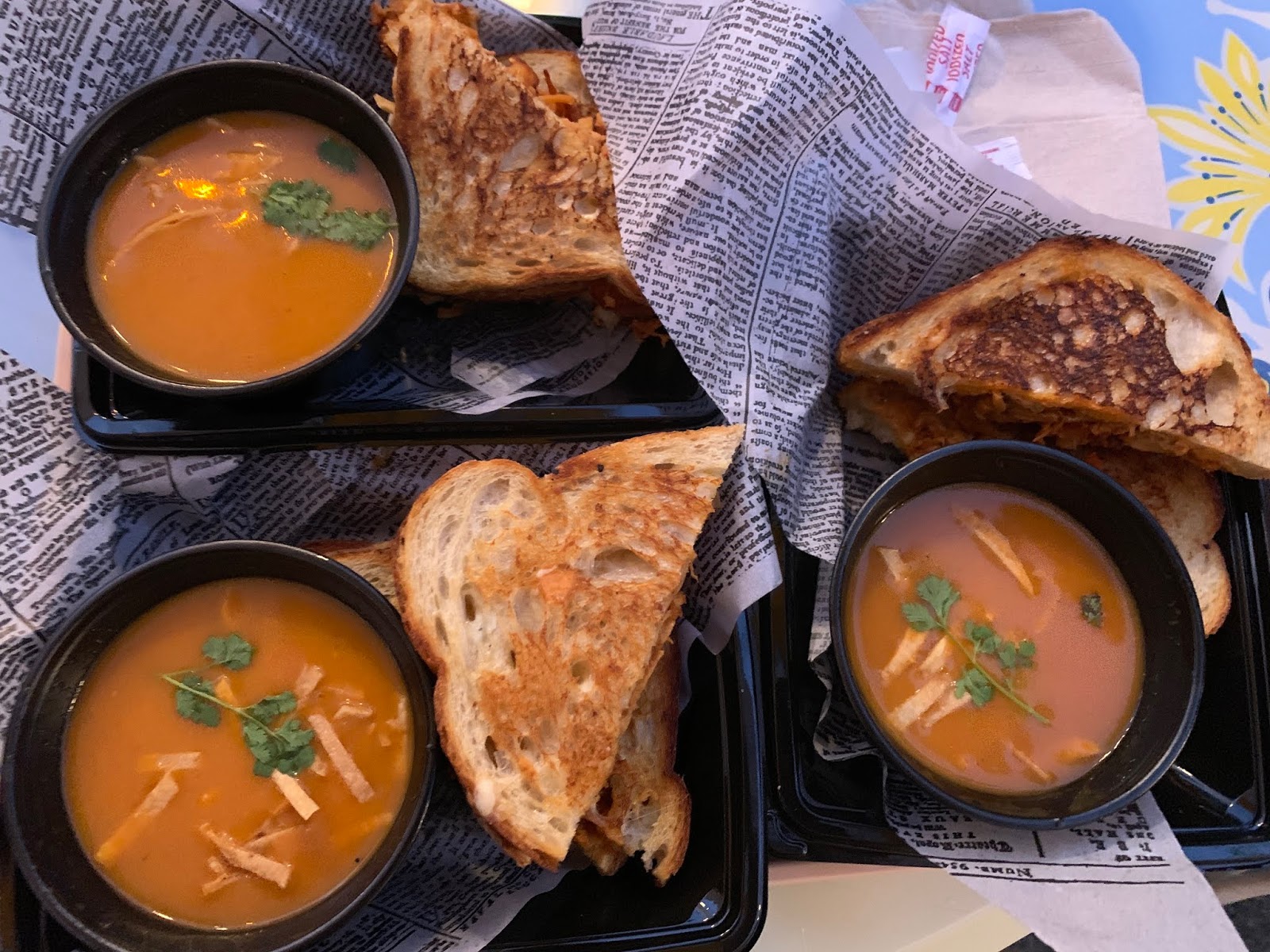 One of their seasonal items is a toasted salsa roja chicken sandwich on the yummiest bread ever with a side of tortilla soup for dipping!!!!!