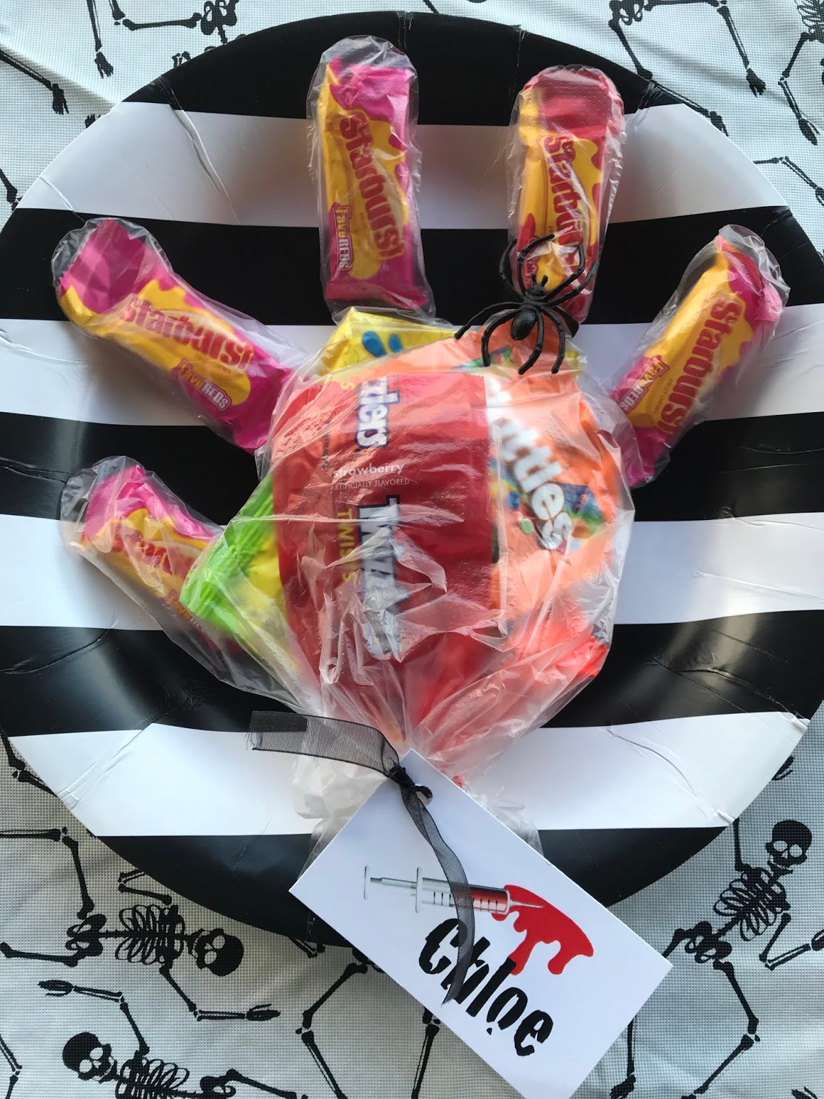 And for the kids table I had each place setting marked with a plastic candy filled glove.