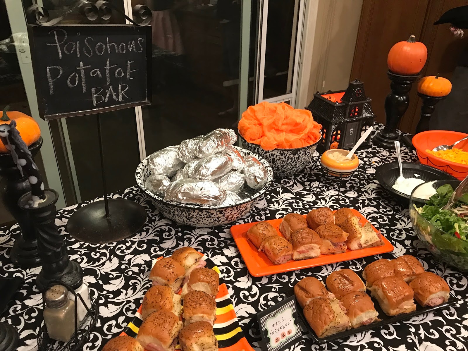 We had a baked potatoe bar with chili, cornbread and mini Hawaiian sandwiches…