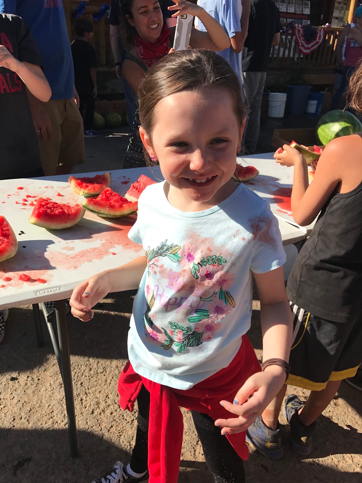 The kids entered a WATERMELON EATING contest.