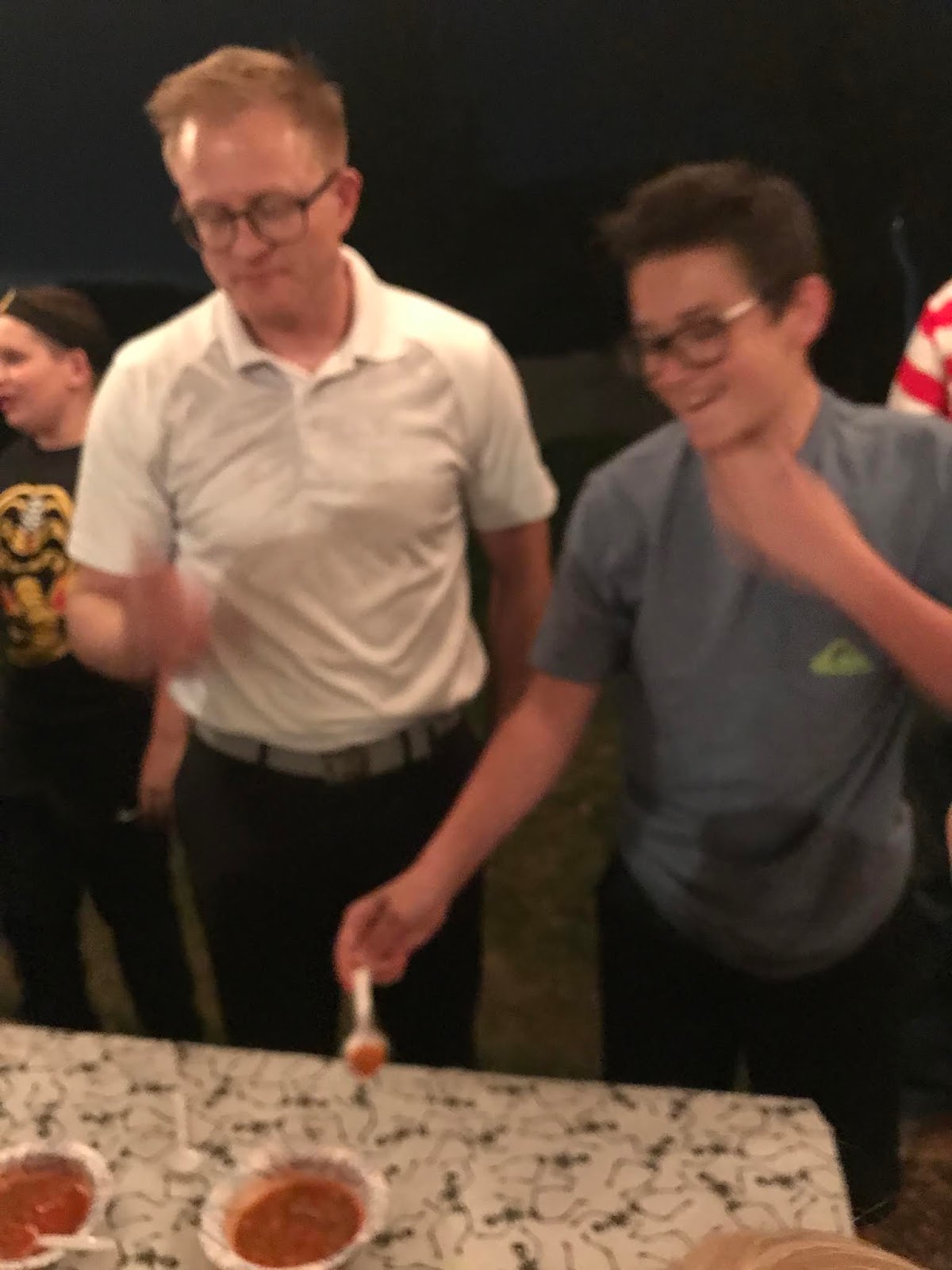 Each team player that accepts the challenge to eat a spoonful of the HAIR RAISING HOT SAUCE mixture adds 10 points to their team.