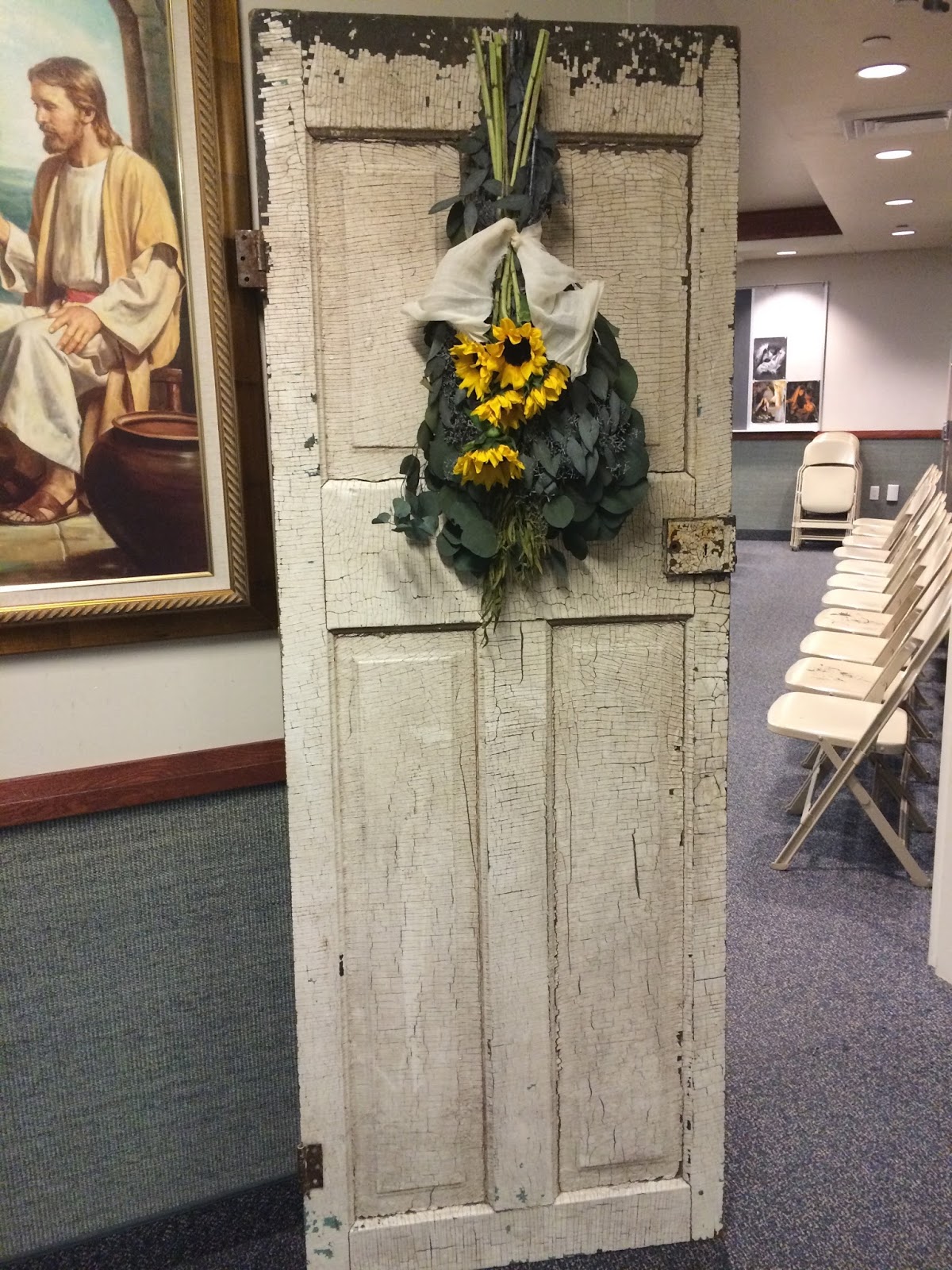 Outside each classroom we had a door {to go along with our ‘opening your door’ theme} with fresh sunflowers and eucalyptus hanging from it.