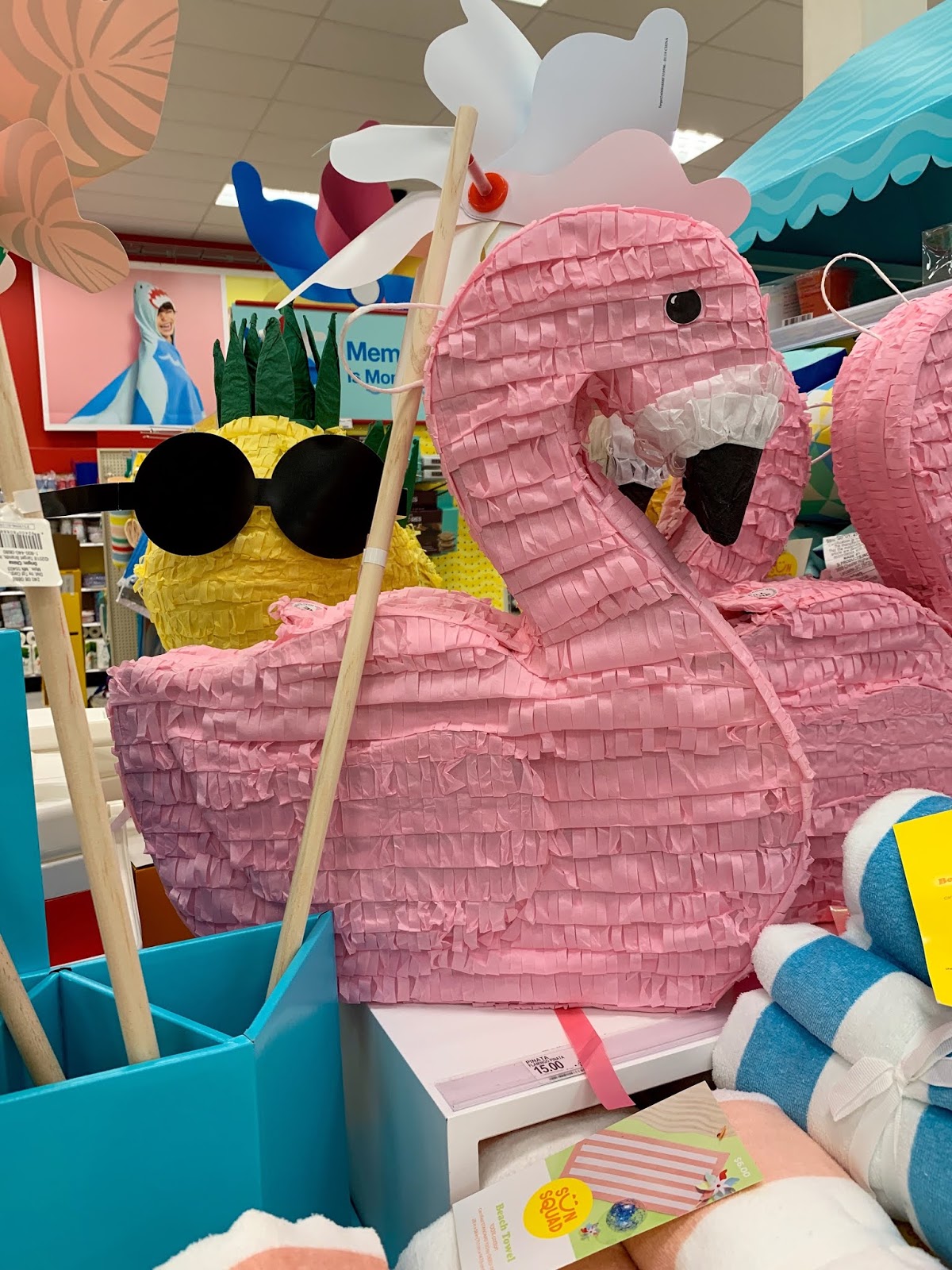 These flamingo pinatas are just about the cutest things I’ve seen all day. So are the pineapple ones, behind it!