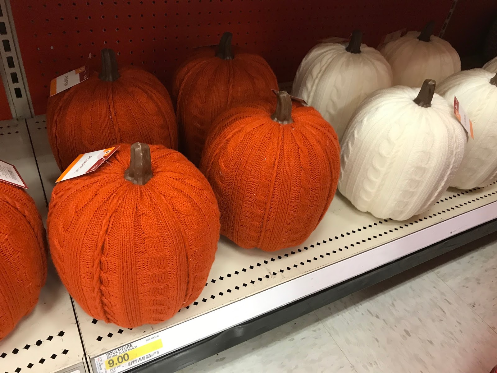 In the back of the store with all of their Halloween stuff…I spotted these CUTE sweater like pumpkins.