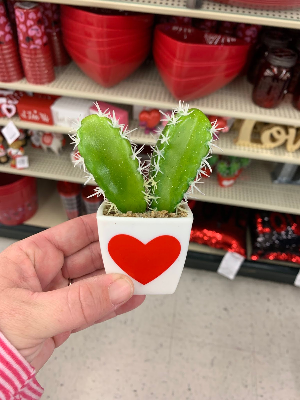 I ran in and out of Hobby Lobby this past week in about 2.2 seconds but it was just enough time for me to spot this adorable Valentines cactus. $3.99 with 40% off!