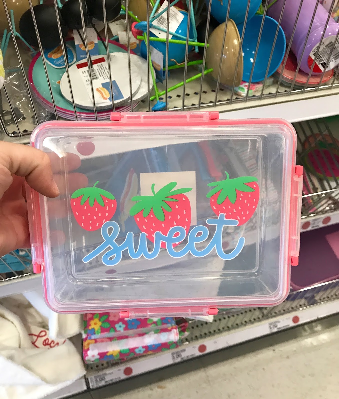 They have a bunch of these cute plastic containers with lots of different sayings and images.