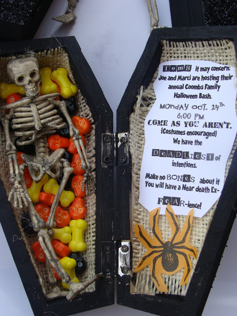 One year we sent out coffins filled with skeletons and candy bones as our invitations…