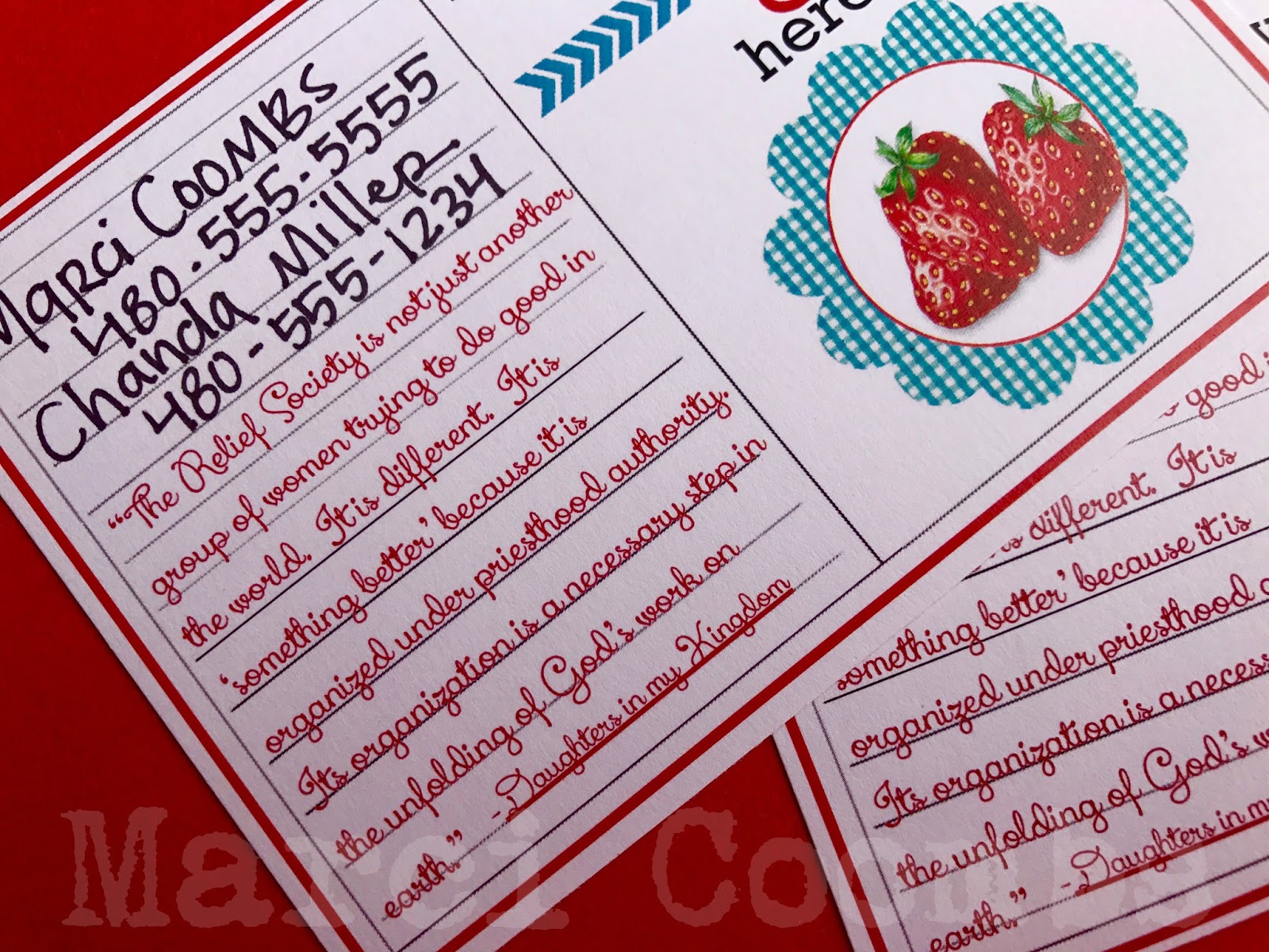 If you wanted to get SUPER fancy – – you could laminate these cards and add a magnet to the back so that your ladies could hang it on their fridge.