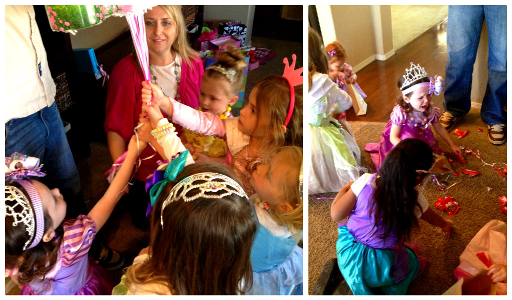 And it’s all fun and games until the birthday girl gets bonked on the head by the candy.