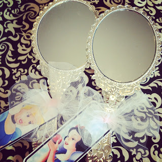 I also scored these cute vanity mirrors from the Dollar Tree and added princess tags for each girl.