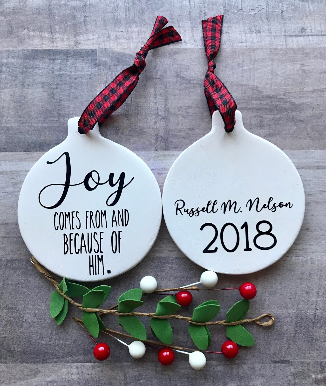Since I currently serve in the Relief Society program, I also wanted to create an ornament with the Relief Society motto on it: