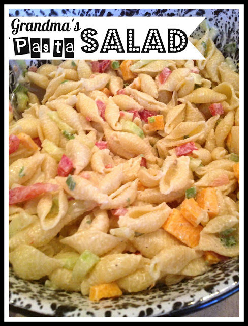 Everytime my family has a barbeque, one of us is assigned to make our Grandma Lamoreaux’s Famous pasta salad. It’s quite simple really and basically just involves boiling your pasta, chopping up your veggies and mixing together your dressing.
