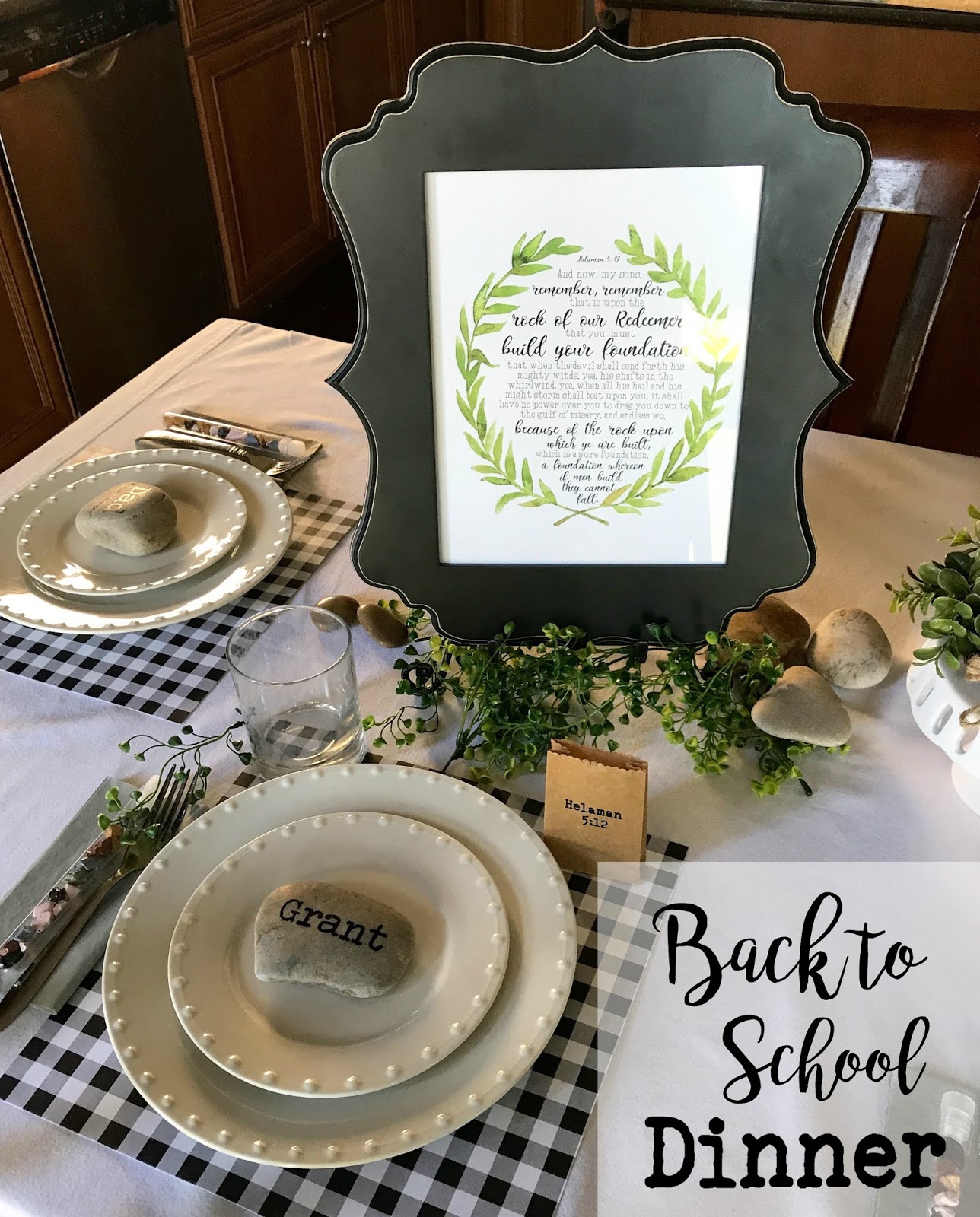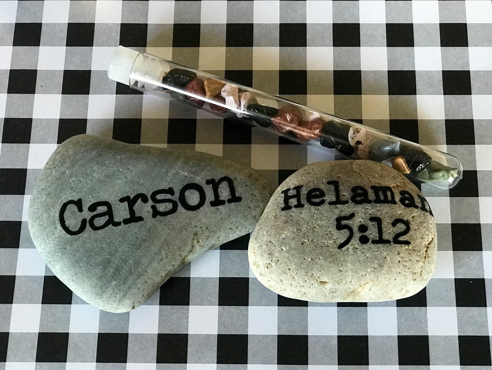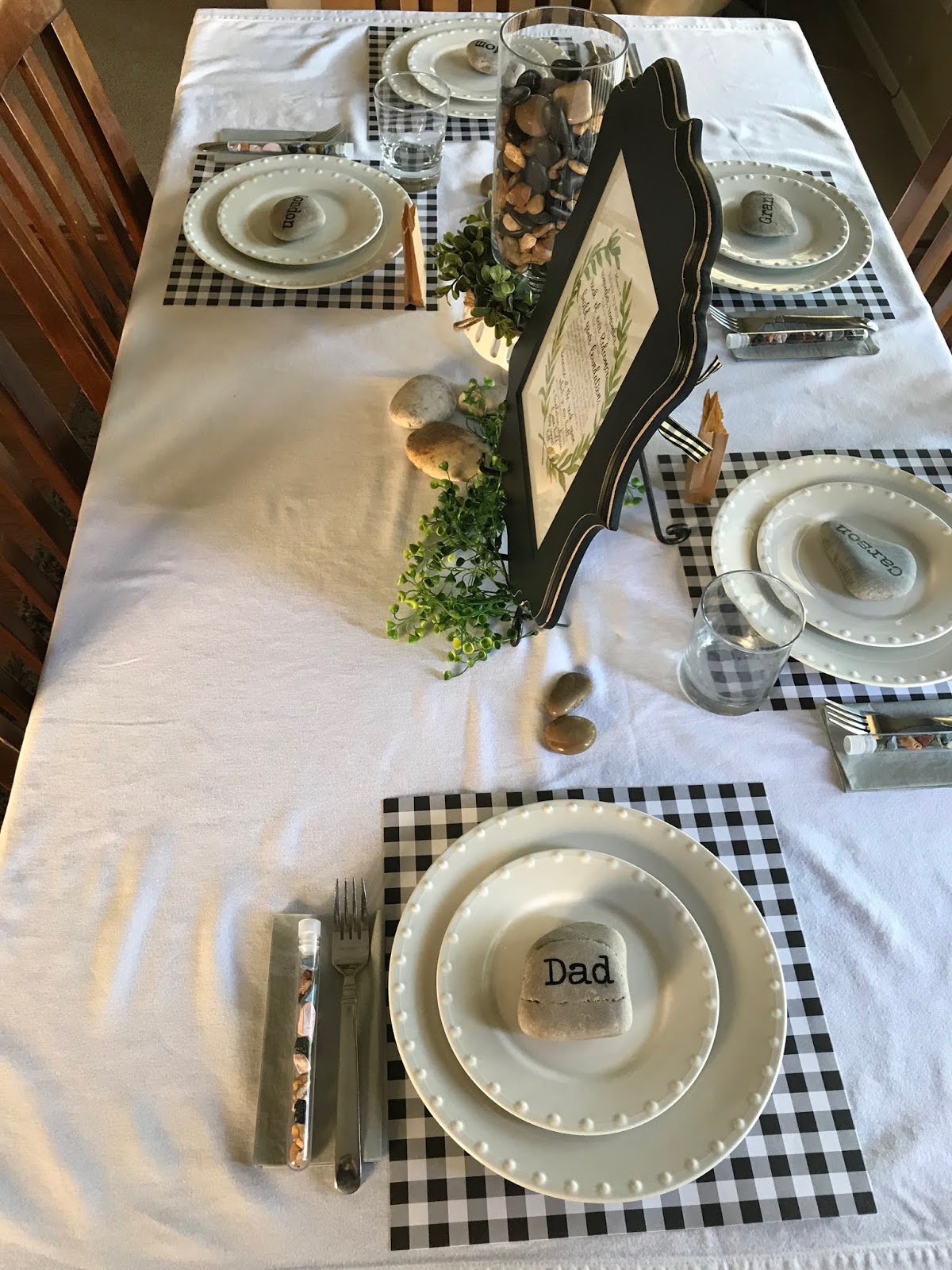 Each place setting had a large rock on it with each member of the family’s name on the front – – and a scriptural reference of our theme on the back.