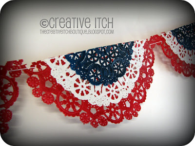 The people from The Scrap Shoppe spray painted white doilies to get this look but I’m almost positive that if you searched on Amazon, you could find already colored doilies.
