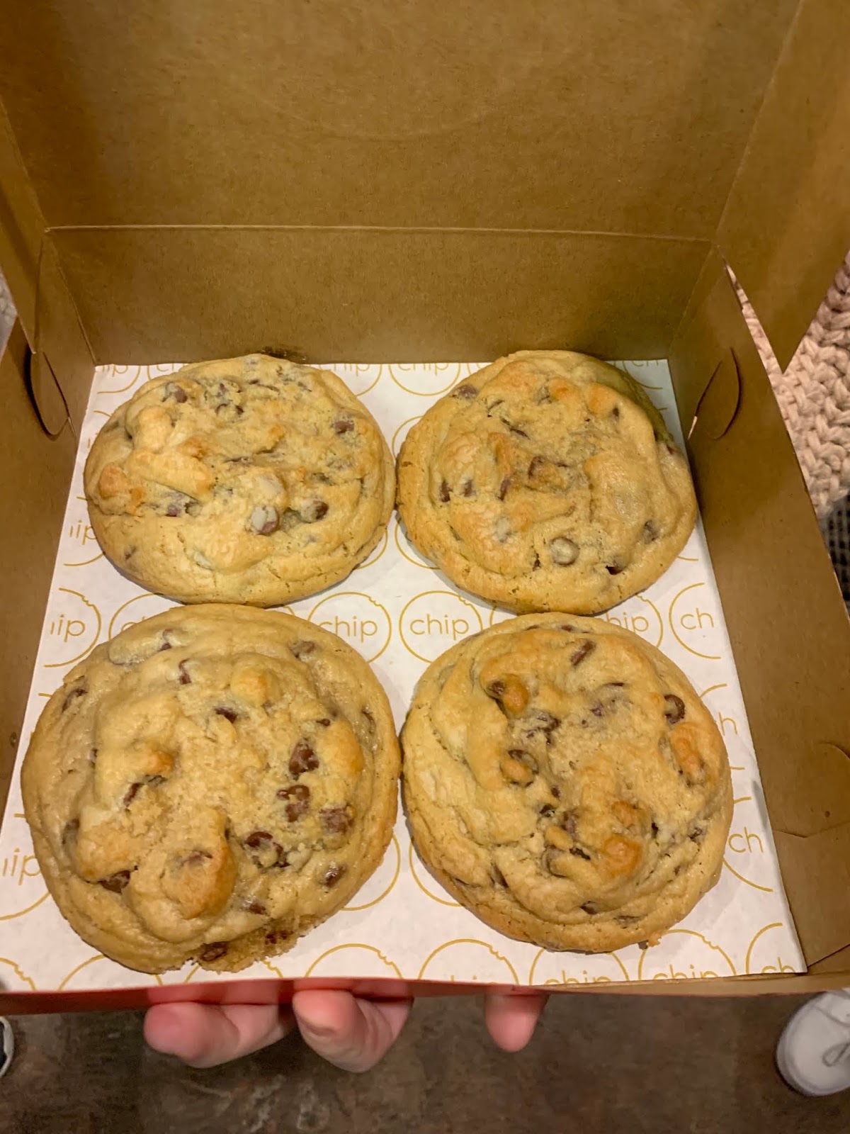 We picked up a box of warm chocolate chip cookies from CHIP for dessert and headed back to see their cute apartment.