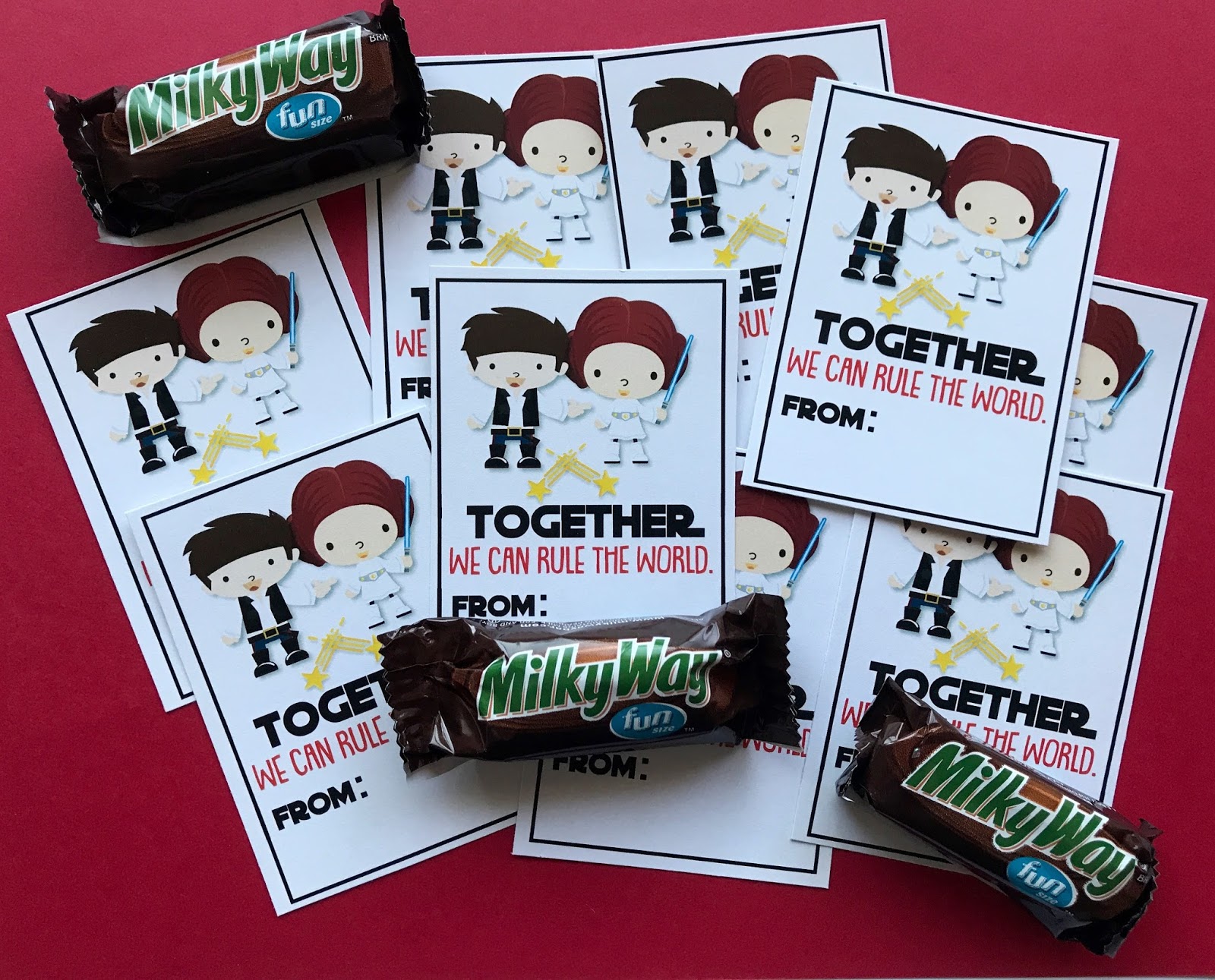 Just tape or staple on a piece of candy {I chose Milky Way because Milky Way = Galaxy and doesn’t that have SOMETHING to do with the movie??๐