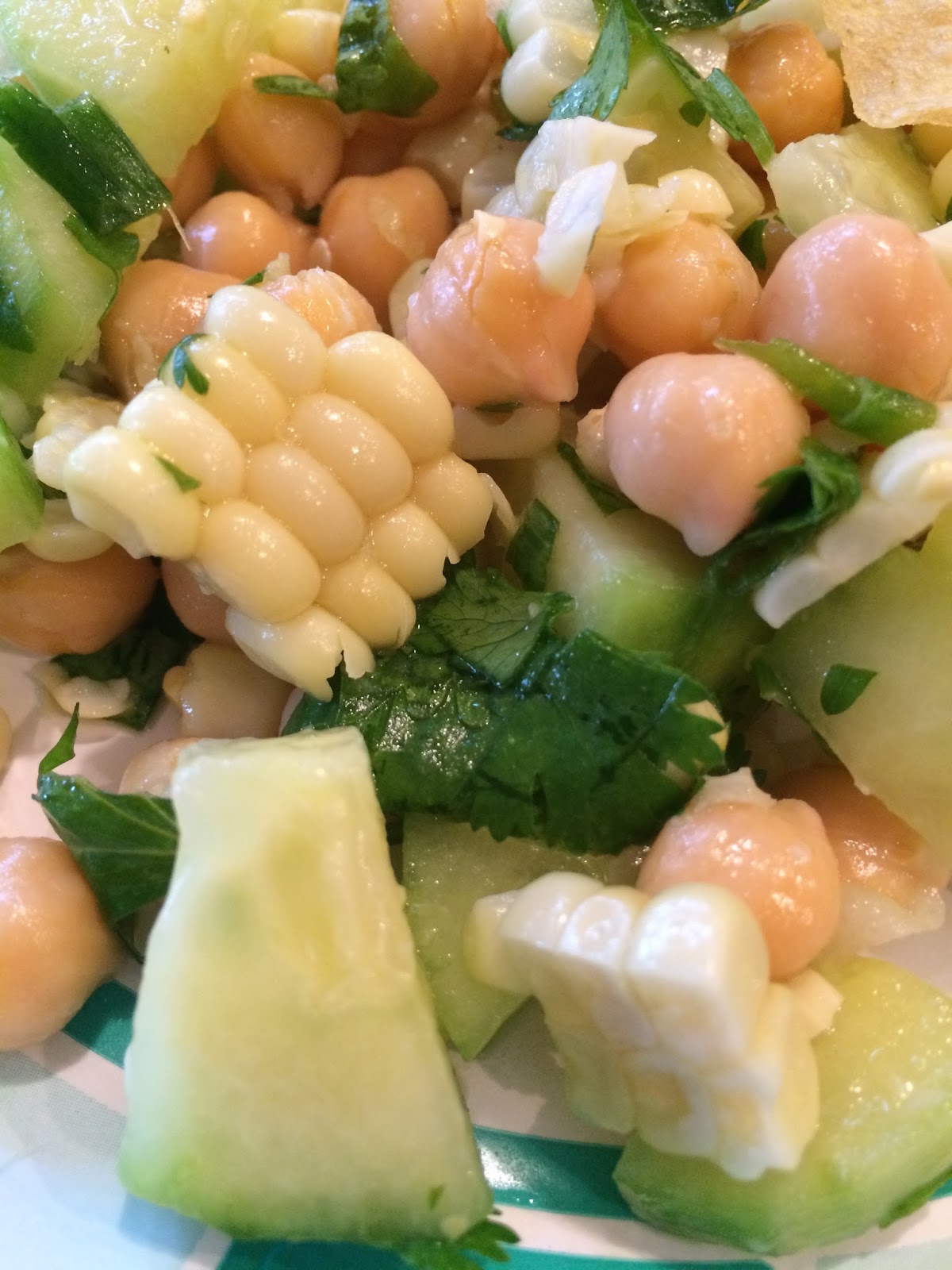 We served ours with potato chips {THIS kind is our family favorite} and the following salad {which I also made up ahead of time}.