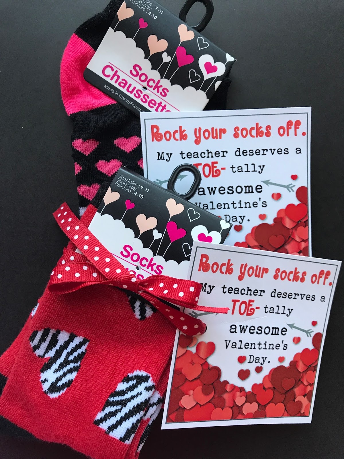 Just attach these to a pair of Valentine socks {they have loads at the $ store!!} and you are good to go!