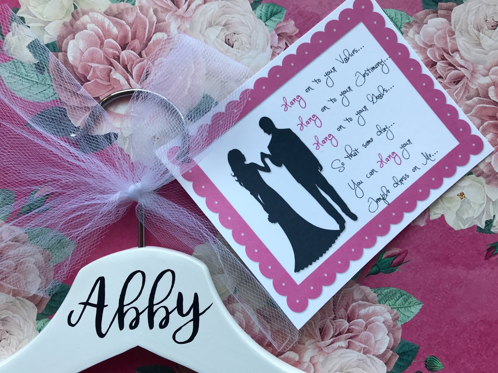 These hangers are to serve as a REMINDER to your girls, as they hang it in their closet, that some day….they’ll be hanging their wedding dress on it and meanwhile…they need to be ‘hanging’ onto their values…in order to get them to the temple.