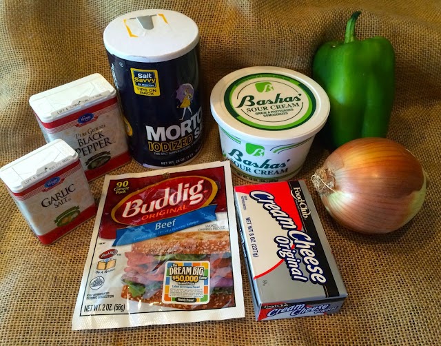 Mix cream cheese with milk, onion, garlic salt, pepper, salt and sour cream.