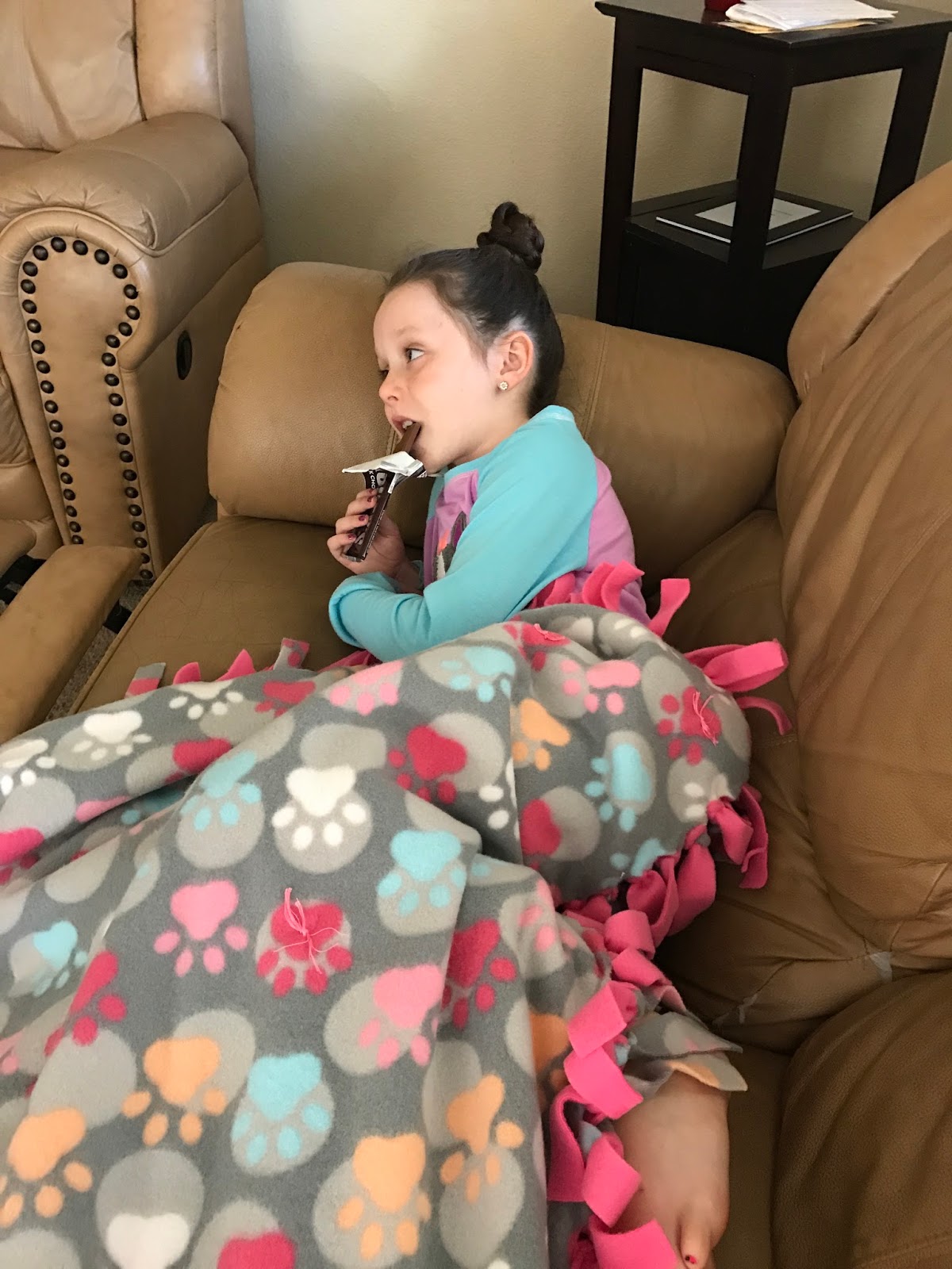 It’s totally normal to let your daughter eat a candybar on the couch when they’re not feeling well, right? ๐