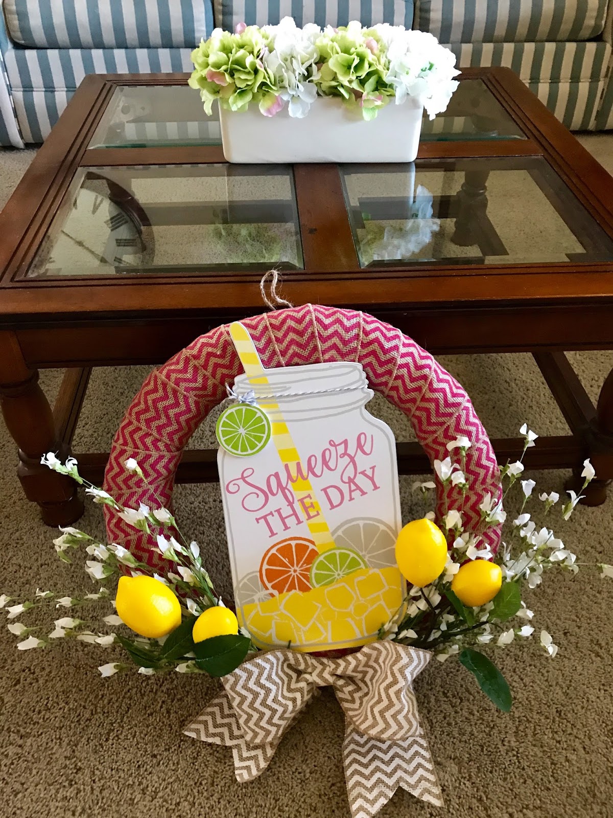 All she told me was that she wanted something PINK and with LEMONS and I think this may be my favorite wreath, yet.