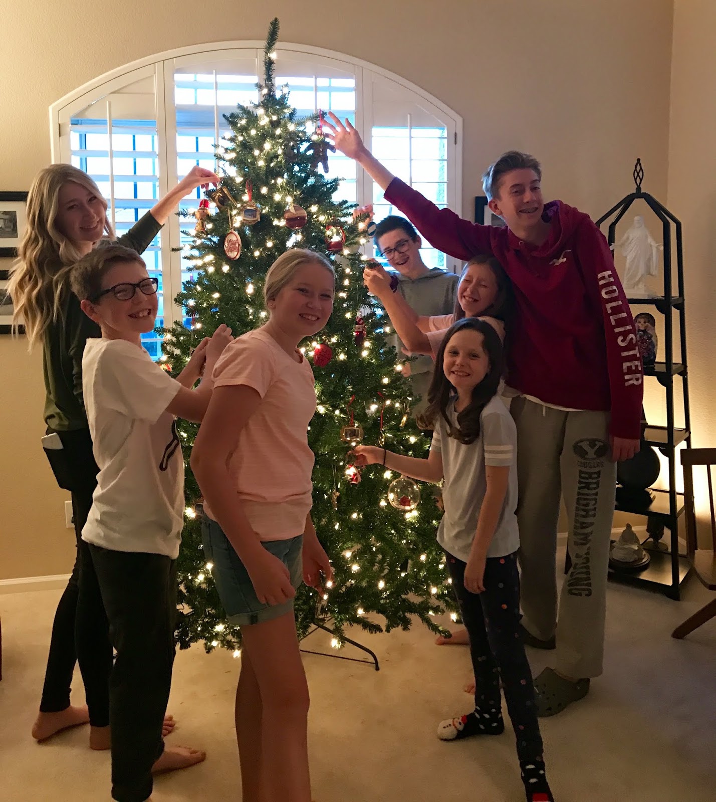 We made homemade turkey pot pie for lunch and then headed back over to my parents’ so that all of the grandkids could help decorate their Christmas tree.