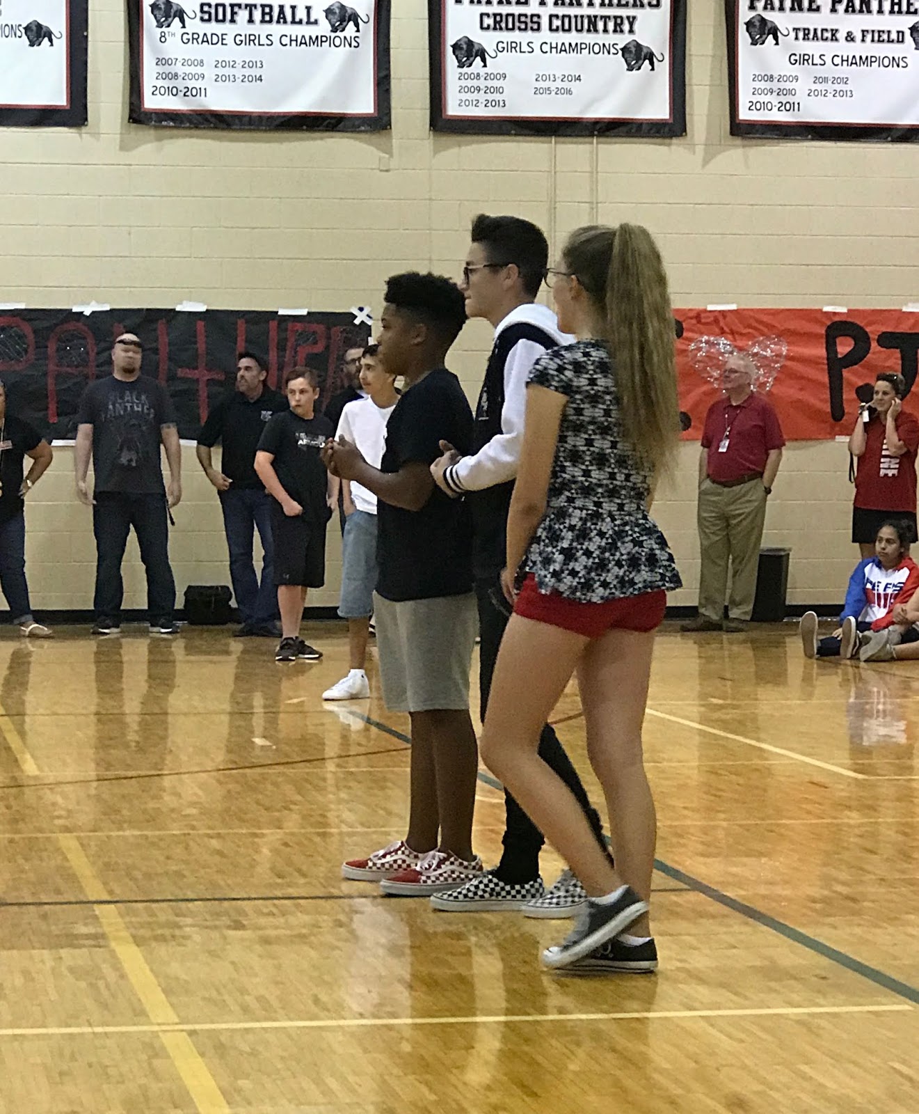 * Grant competed in a ‘dance off’ at his junior high assembly on Friday afternoon.