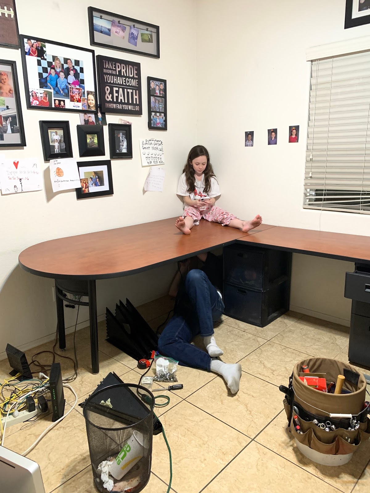 Back at home while the boys hung out with friends, Joe continued working on some new office furniture😂