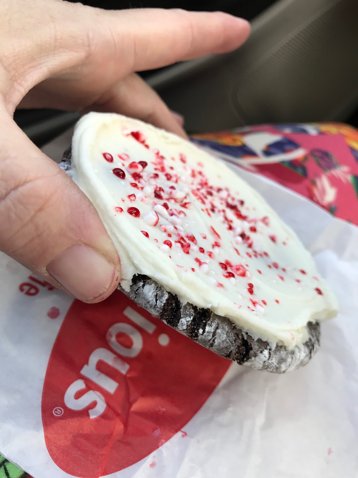 I might be a little too giddy with the fact that their CHOCOLATE CRINKLE COOKIE with PEPPERMINT CREAM CHEESE frosting is back!
