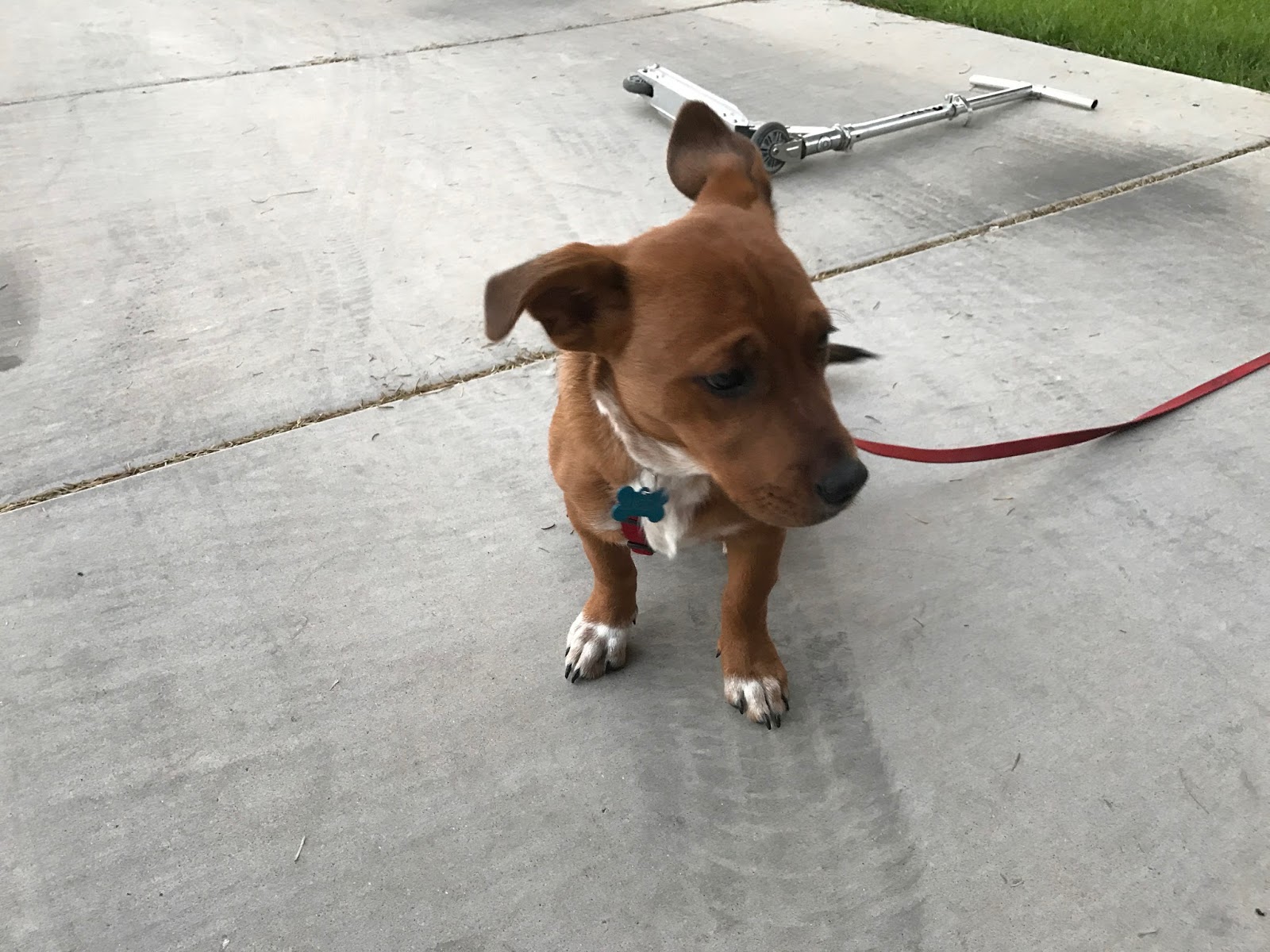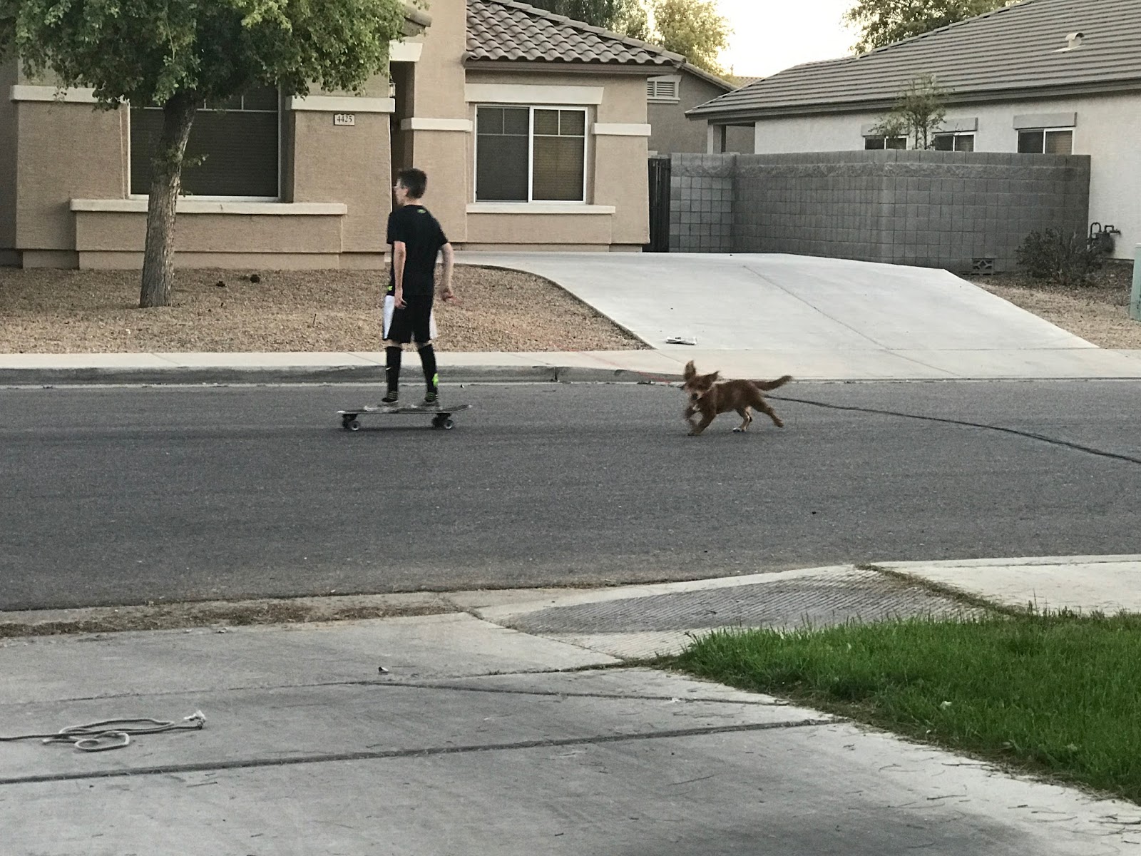 Grant’s new favorite thing is to ride his longboard while taking Cubby on a walk with his leash.