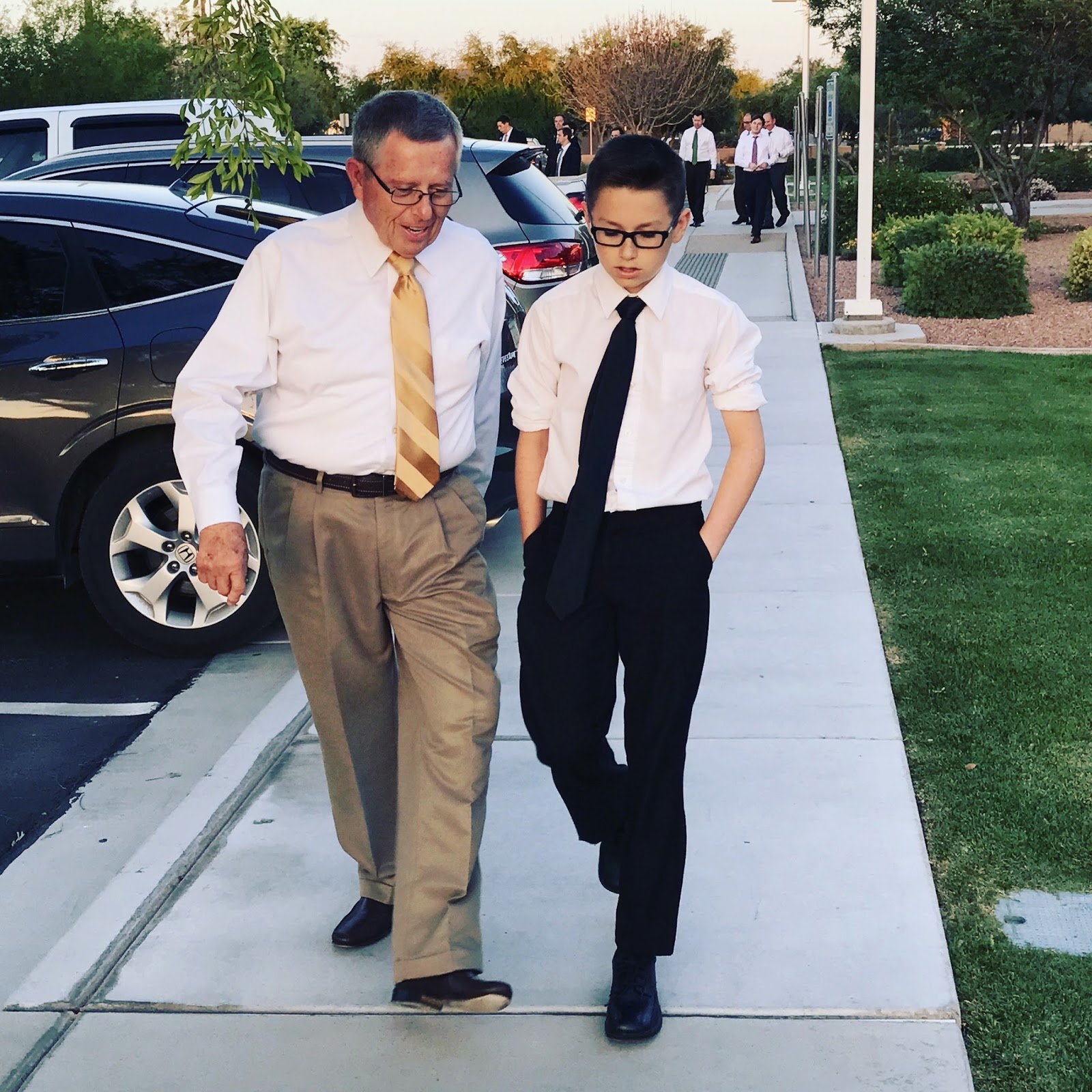 Joe snapped this one on their way into the church building and ๐๐๐ it’s my new favorite pic of Grant and my dad!!!