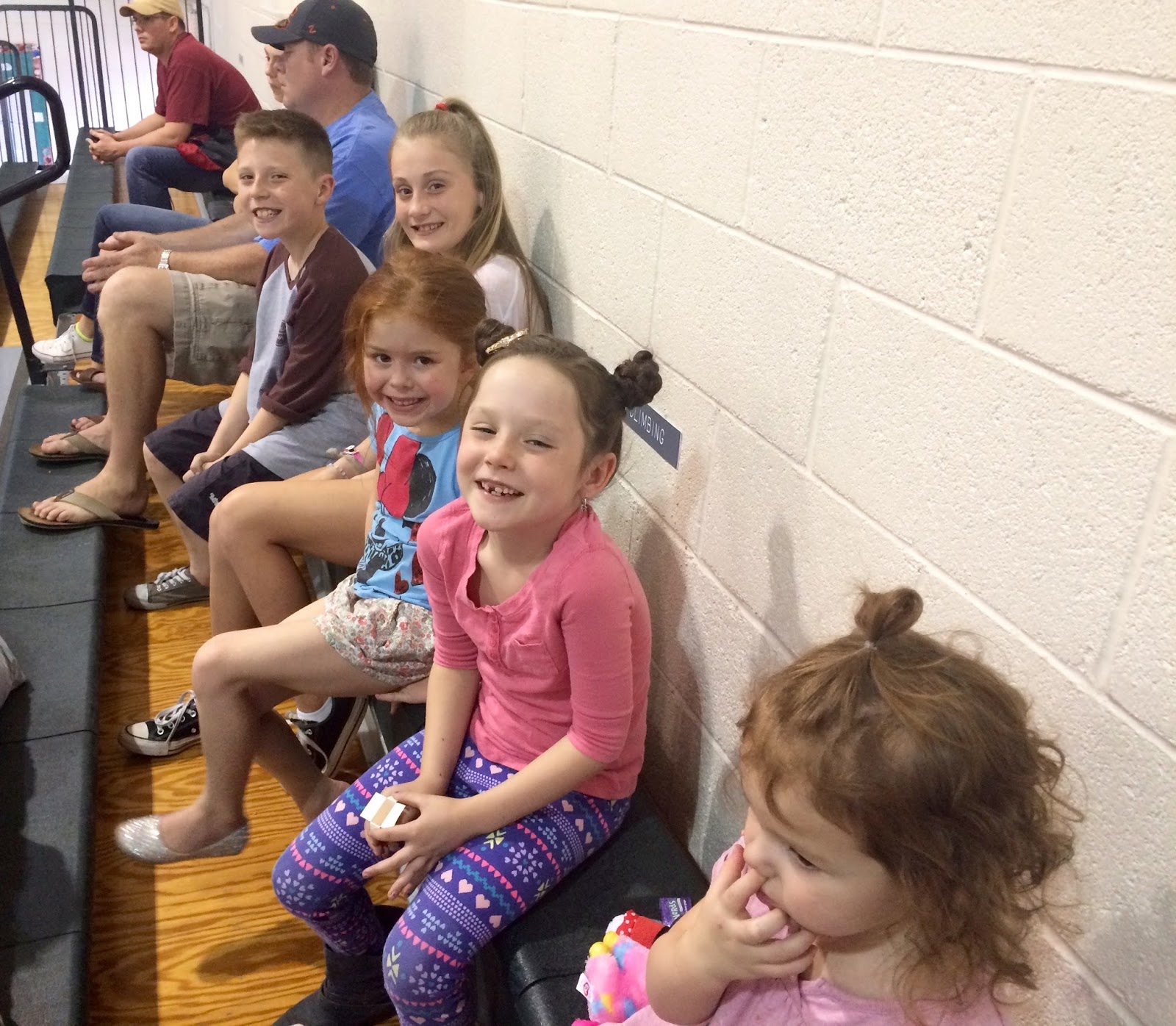 Lucky for us – – a couple of cousins plus a friend got to come and cheer him on! {My niece picking her nose is my favorite part of this pic!}