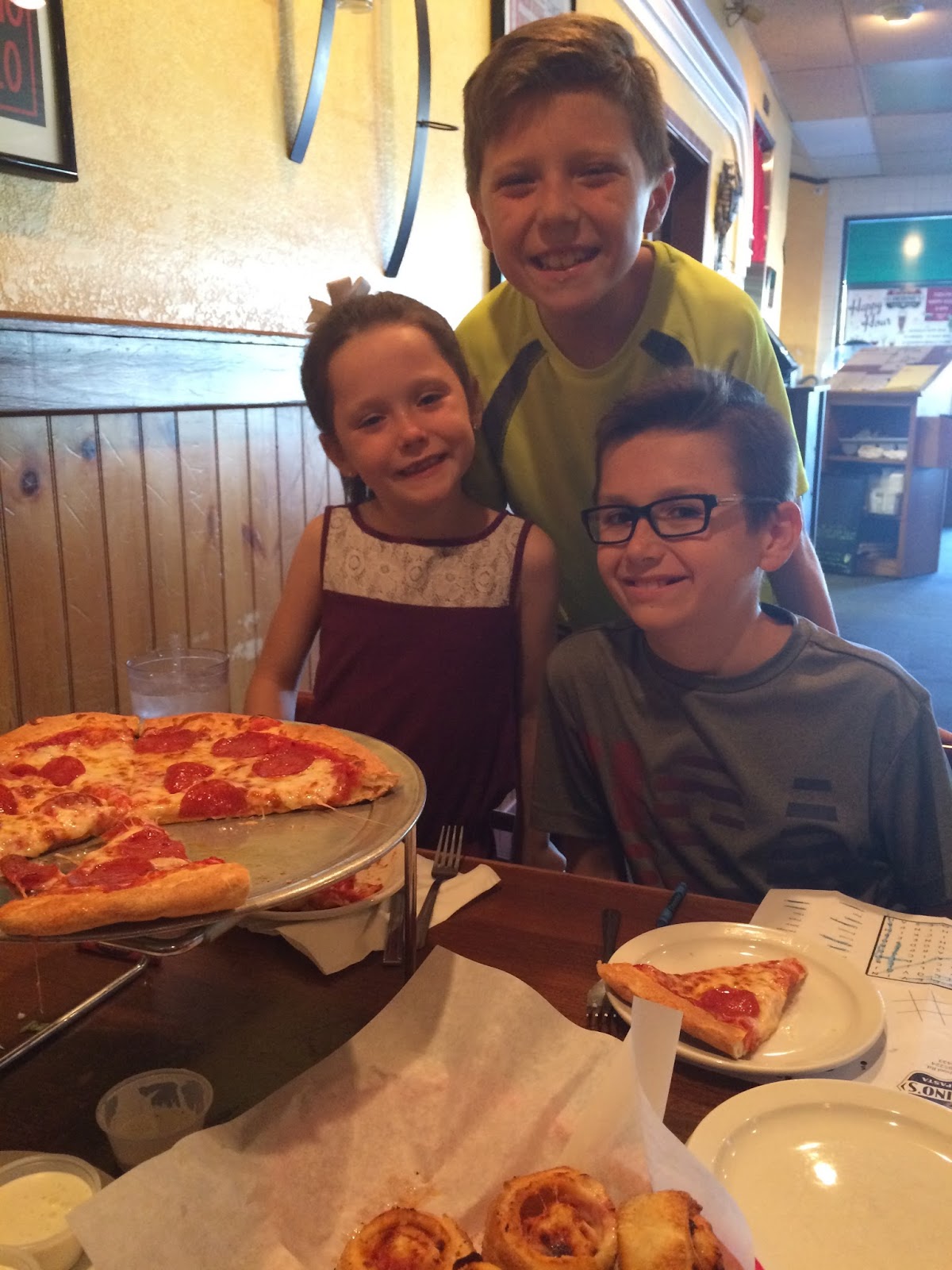 * While Joe and my dad went out to dinner and then on to watch the Priesthood session, the kids and I celebrated their good grades for the quarter with dinner at Floridinos.