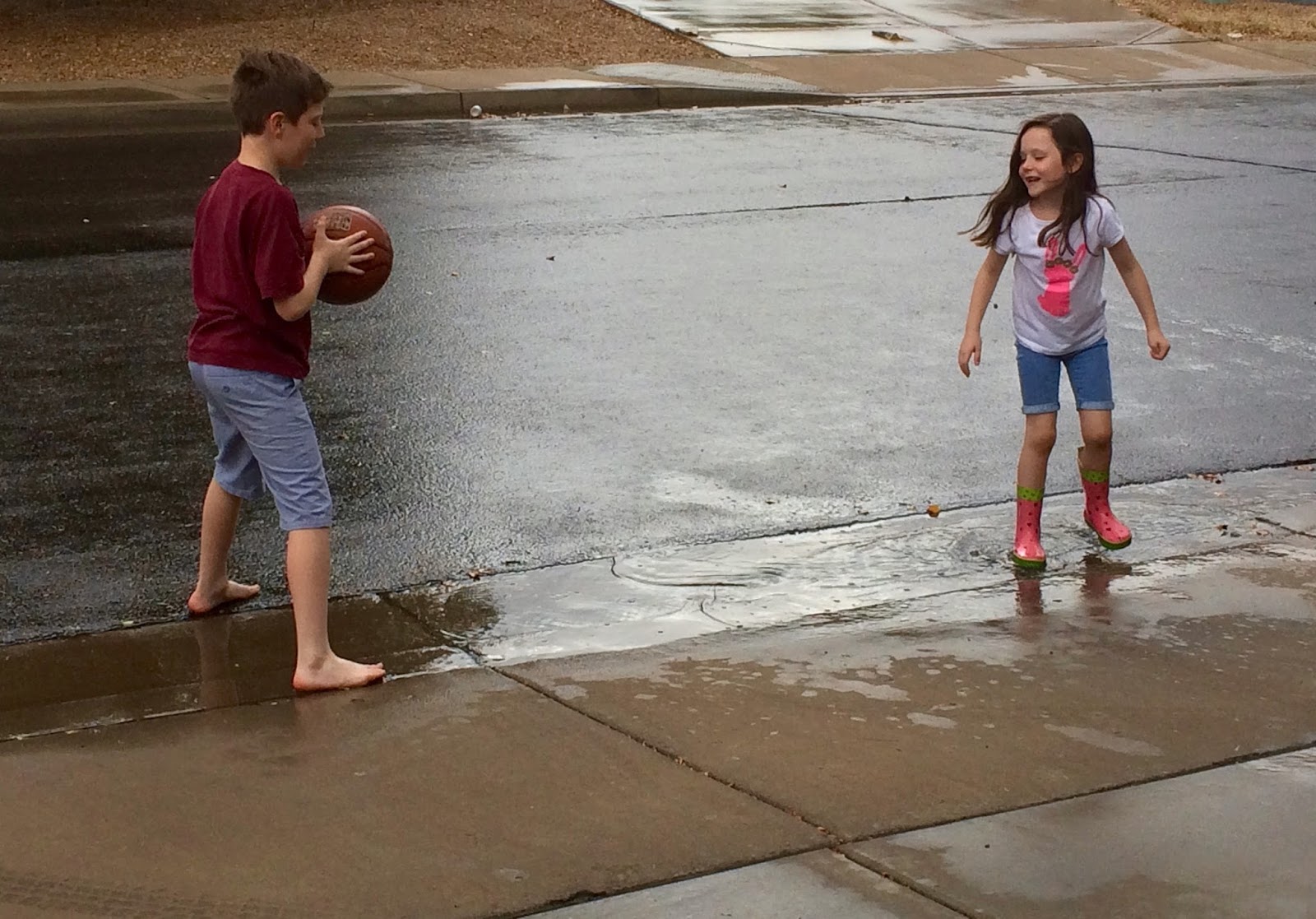 And because rain is such a rare occurrence here in the desert – – the kids feel the need to play outside in it EVERY single time.