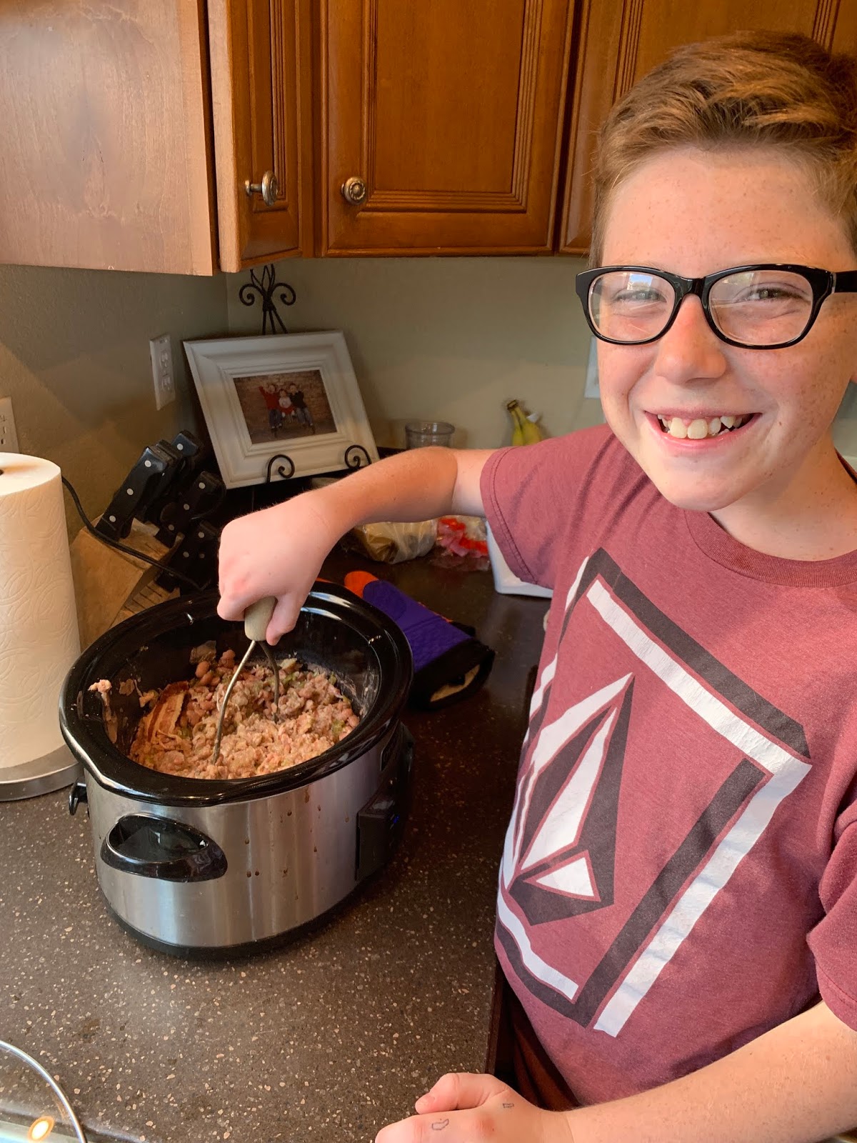 We made chicken tacos and homemade refried beans for dinner {a family favorite}…
