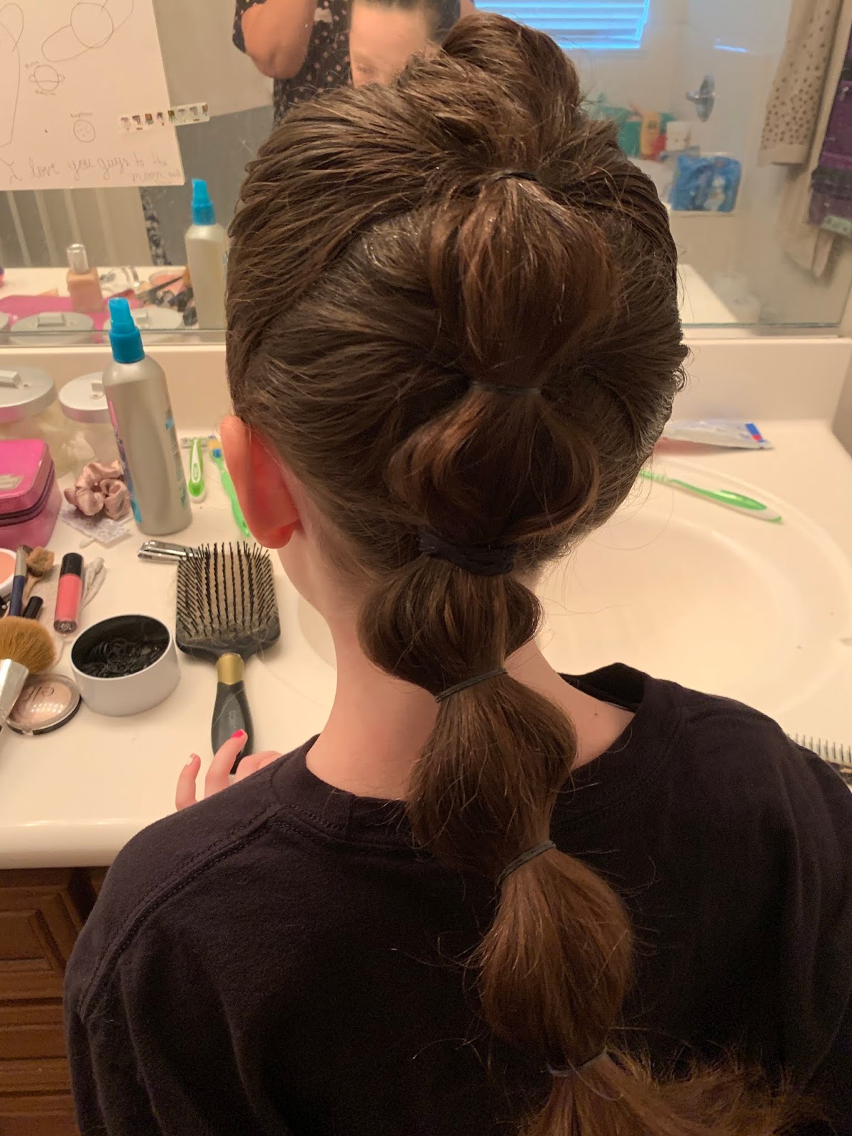 * Saturday morning London had a dance convention bright and early to be to. She wanted a ‘fancy’ hairstyle for it and this was as fancy as I could get at 6 am.