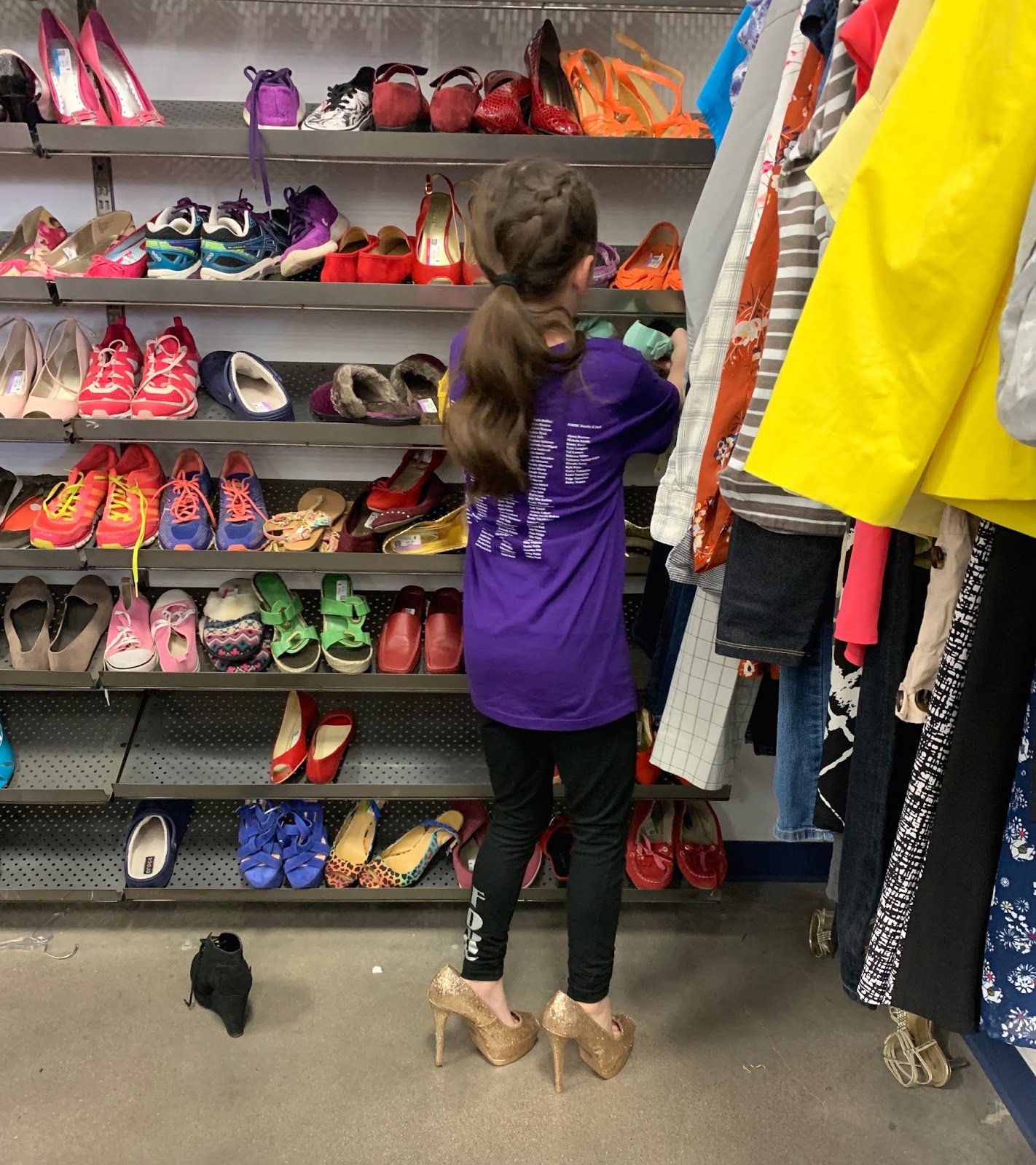 Her very favorite thing to do when we go to Goodwill is to try on hoochie mama high heels.