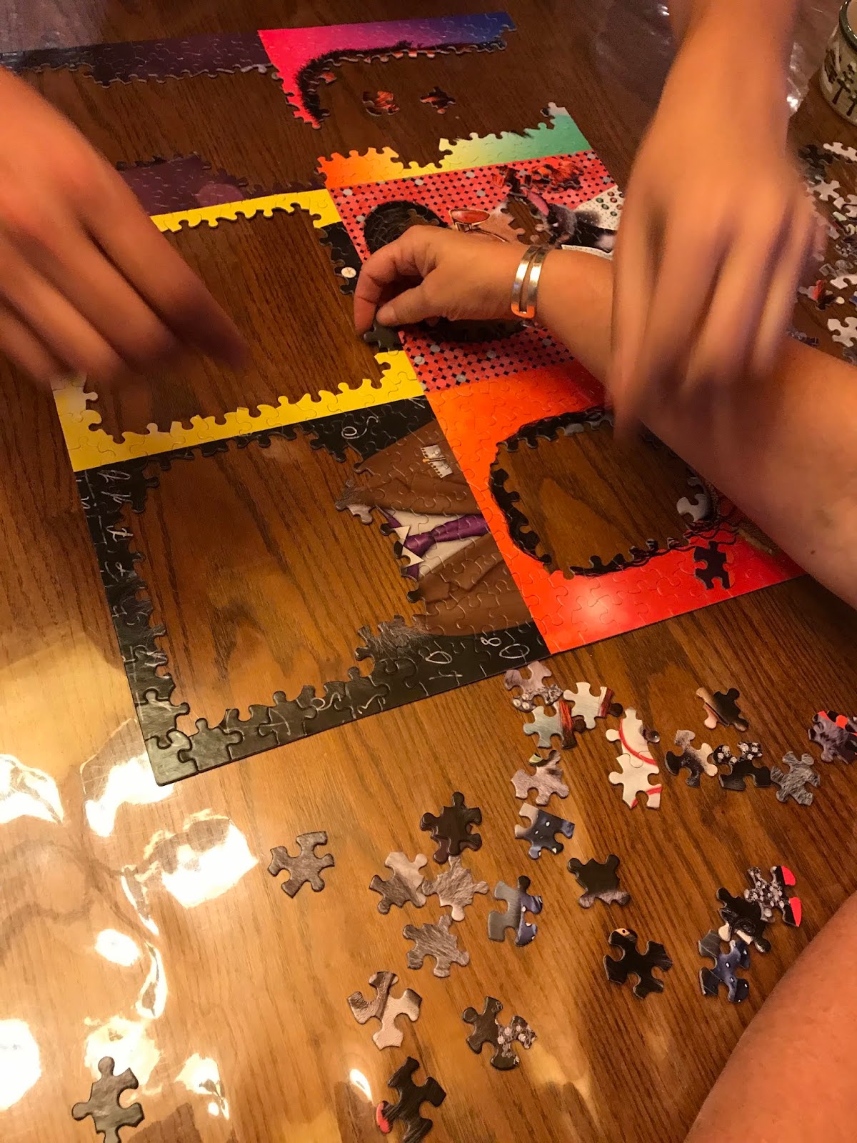 We arrived at the cabin 8 hours later, unpacked, opened up the windows to feel the breeze {something we can’t do in AZ right now!} and started on a 550 piece puzzle.