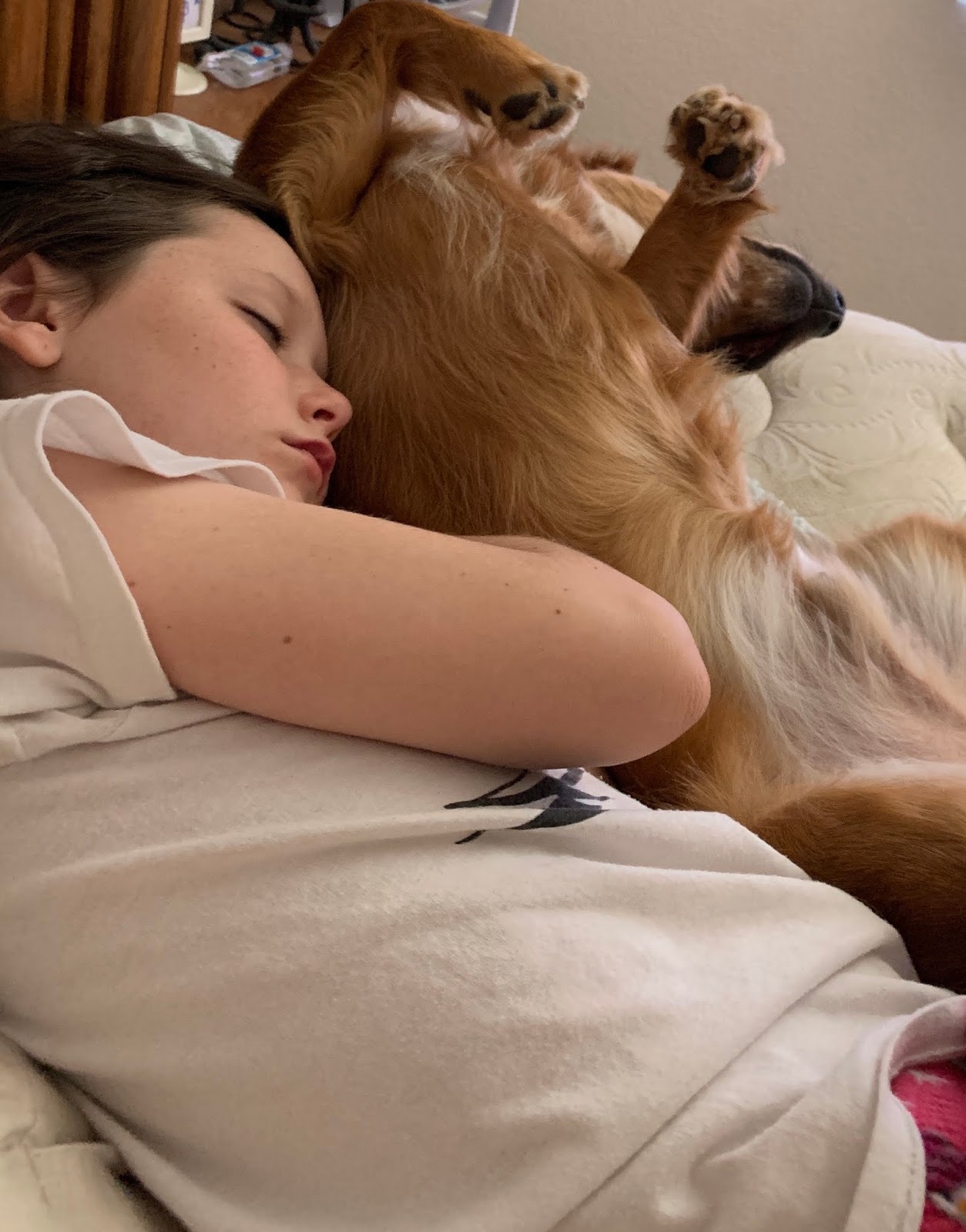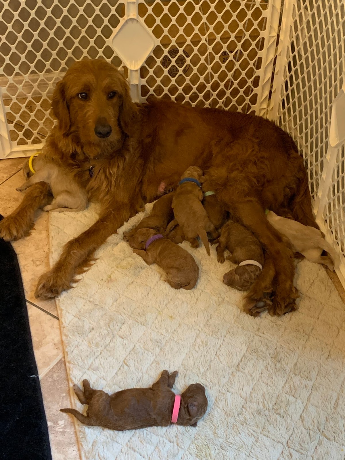 Our friend’s adorable Golden Doodle doggie just had the most ADORABLE puppies last week and so we ooh’d and aah’d at them after we were done swimming.