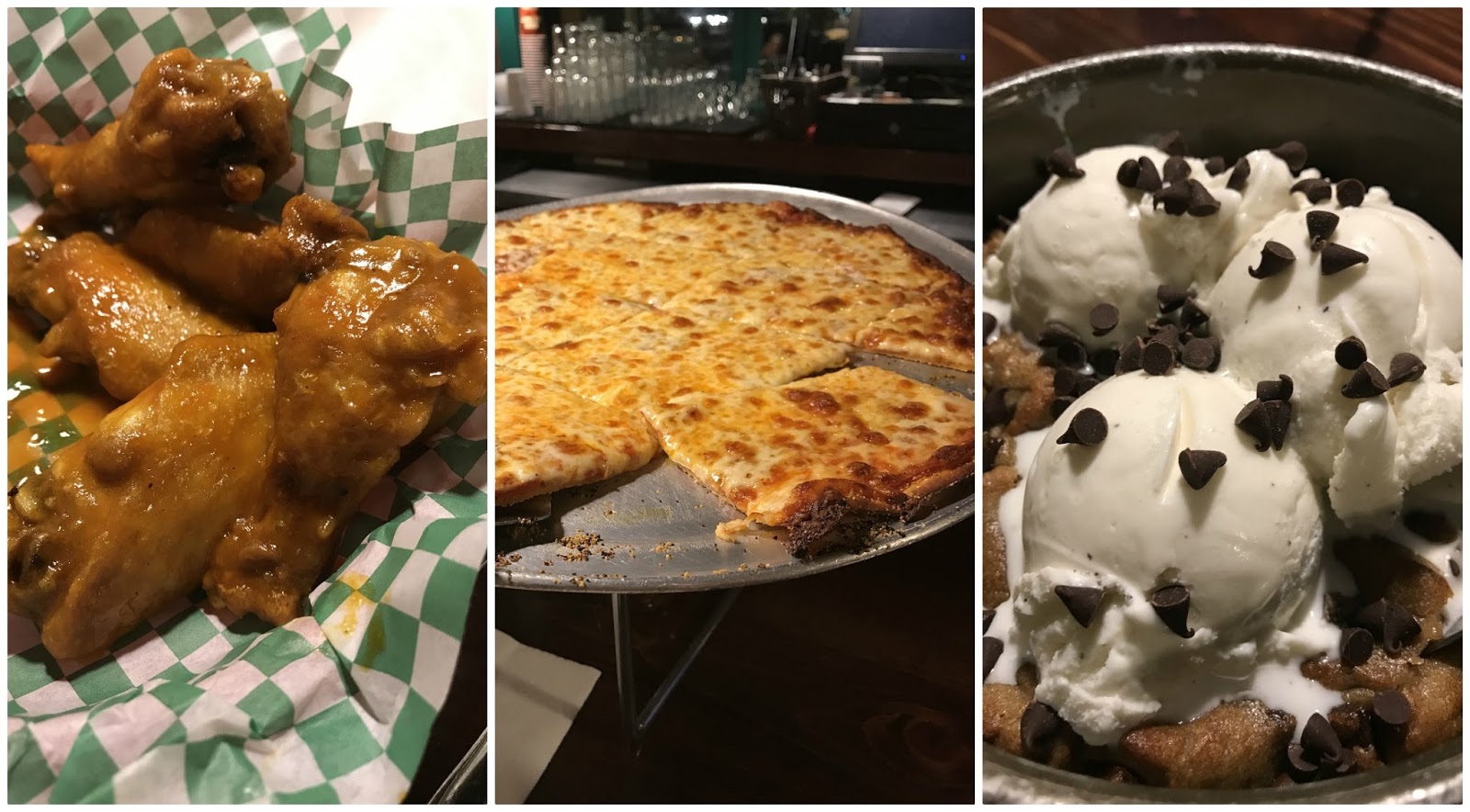 Golden wings + pepp pizza + chocolate chip pizza cookie.