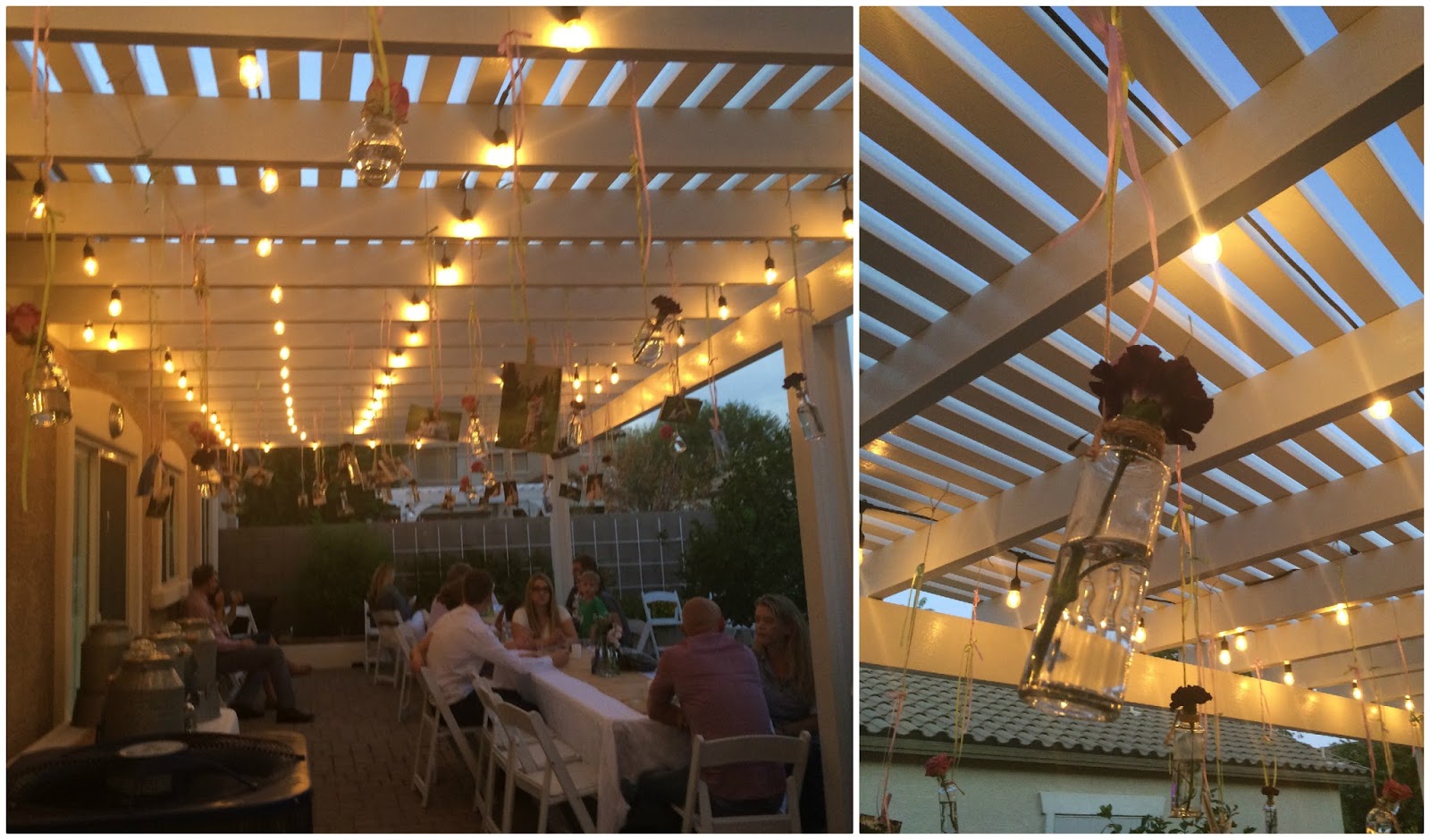 They had the cutest little vases hanging all over outside at their reception – each filled with purple flowers {my favorite!}