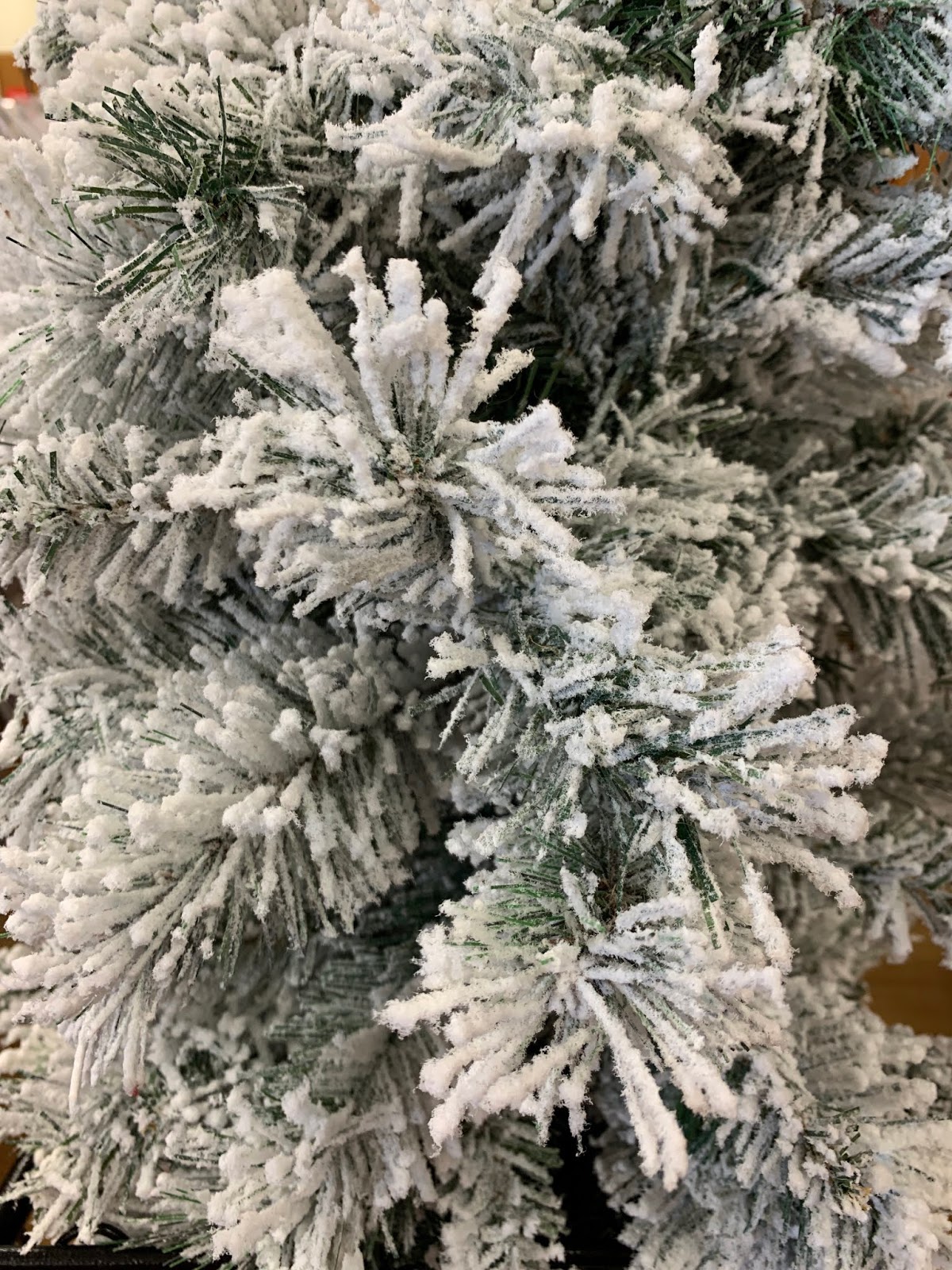 I scored the cutest little 4 foot flocked pre-lit tree for our family room….because one tree just isn’t enough I guess ๐