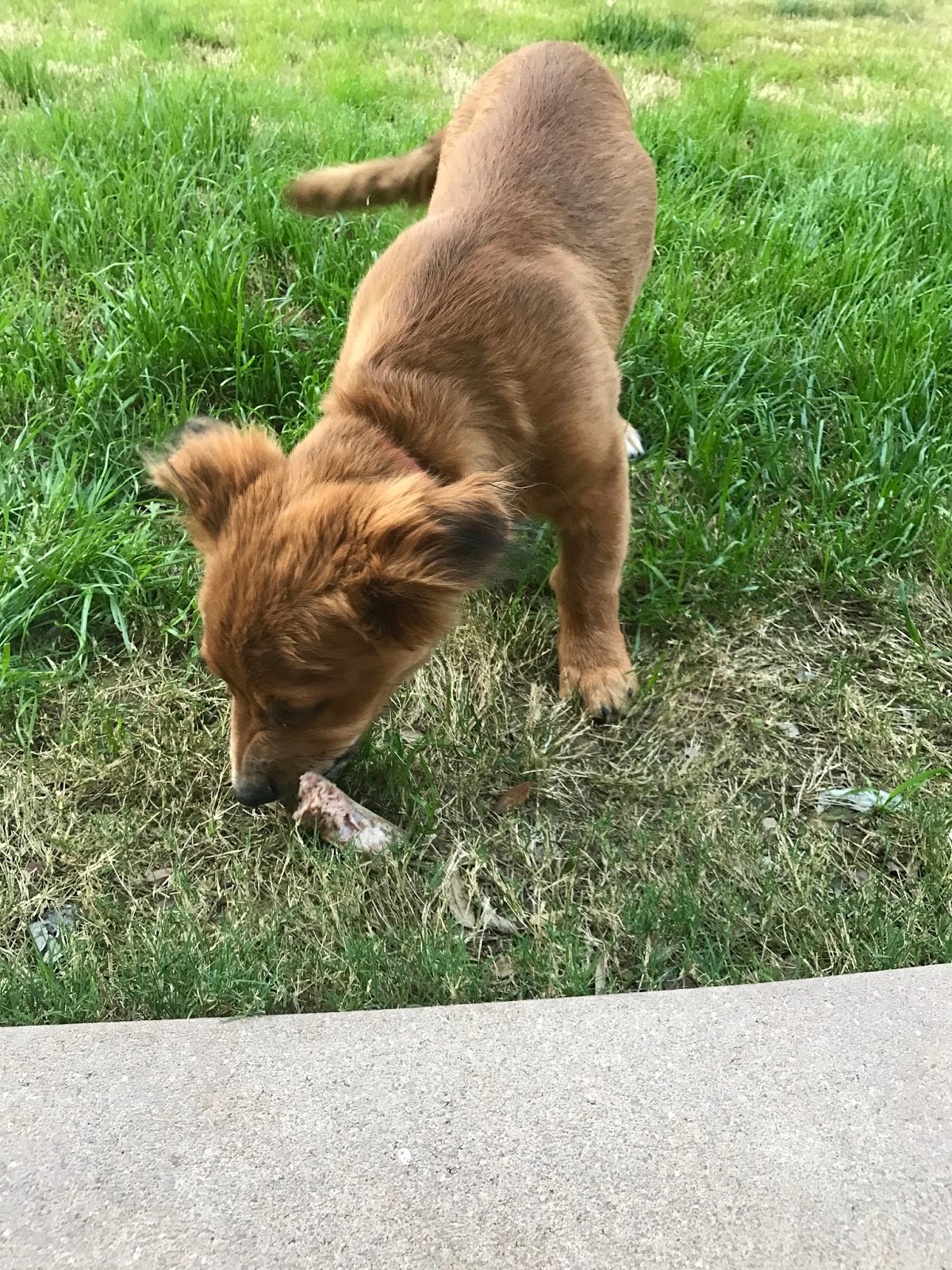 Cubby thought he had won the lottery when we gave him one of our bones. {Side note: Cubby is now 20 pounds!!! Holy cow. He is growing SO fast!}