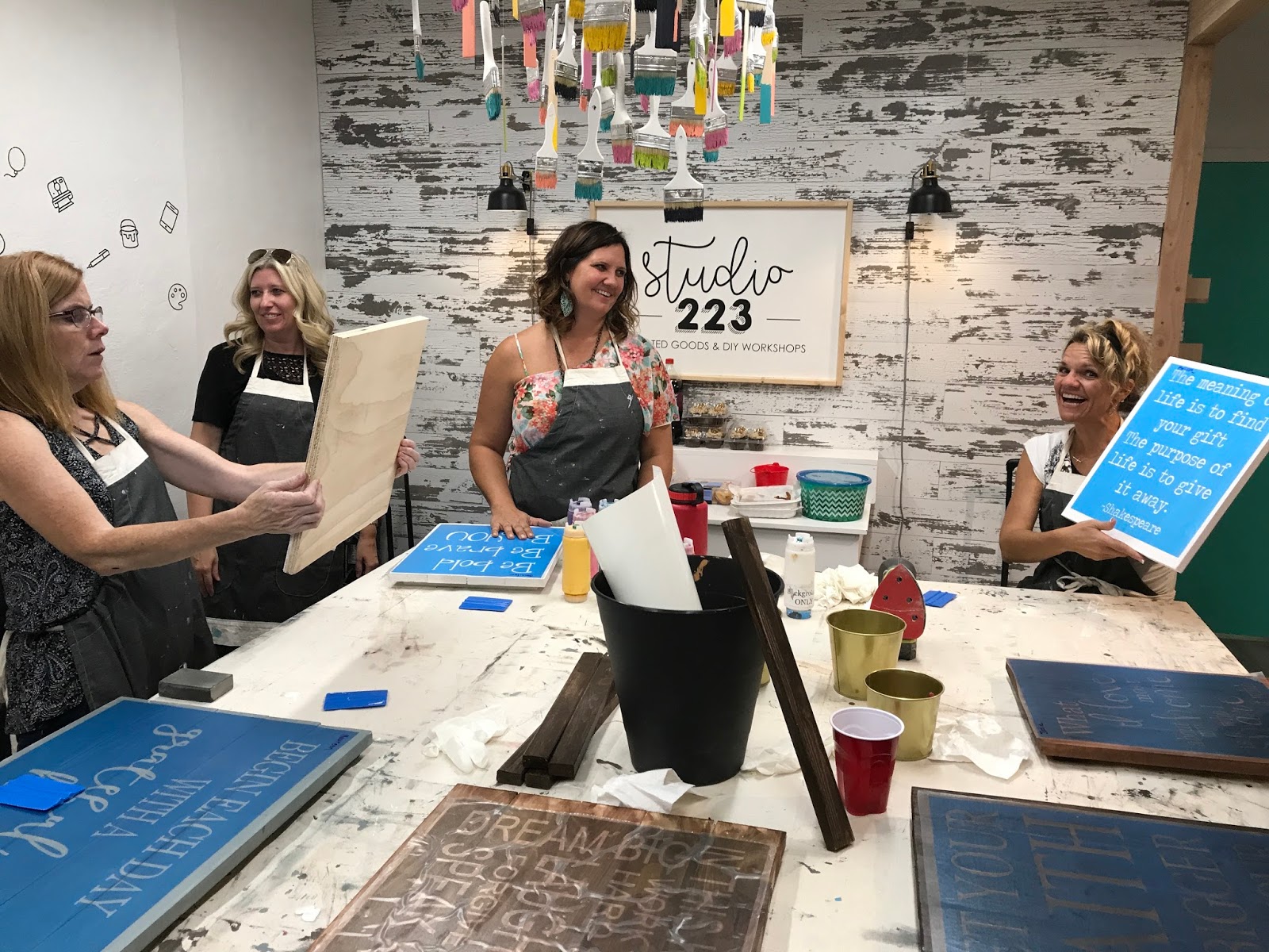 …and then we headed across the street in downtown Gilbert to the cutest litle Studio 223 to spend the rest of the evening whipping up cute home decor signs.