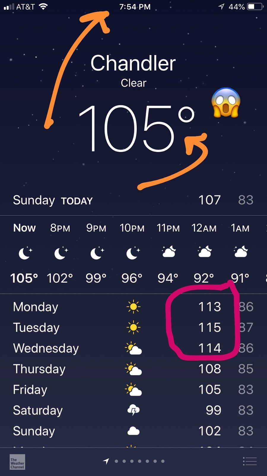 Also…at 8:00 last night it was STILL 105 degrees.